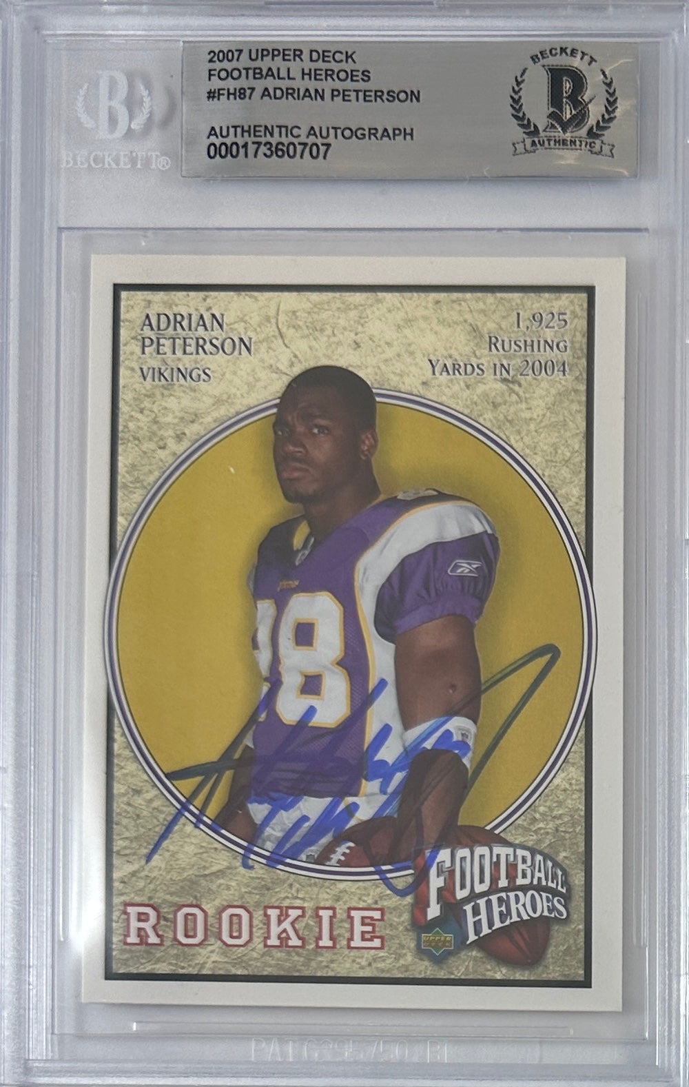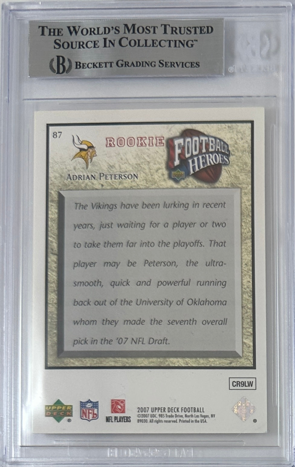 Adrian Peterson auto card 2007 Upper Deck #87 NFL Minnesota Vikings BAS Encap RC
