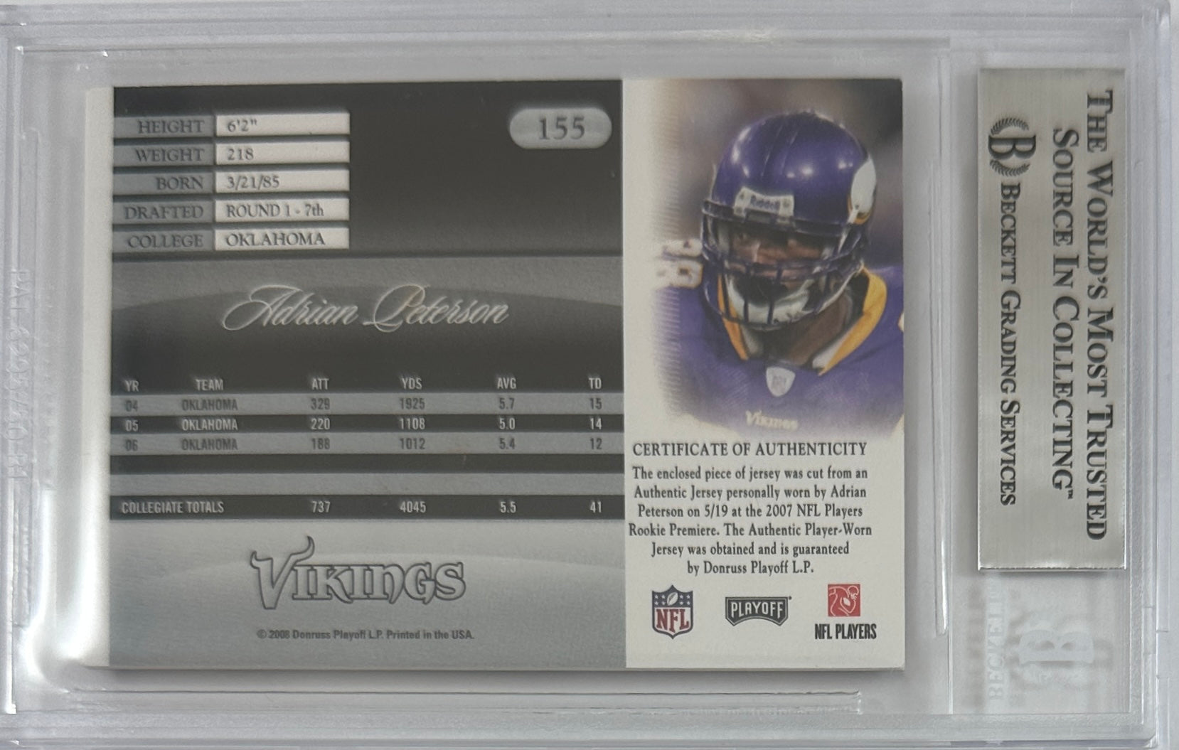 Adrian Peterson auto card 2008 Donruss #155 NFL Minnesota Vikings BAS Encap RC