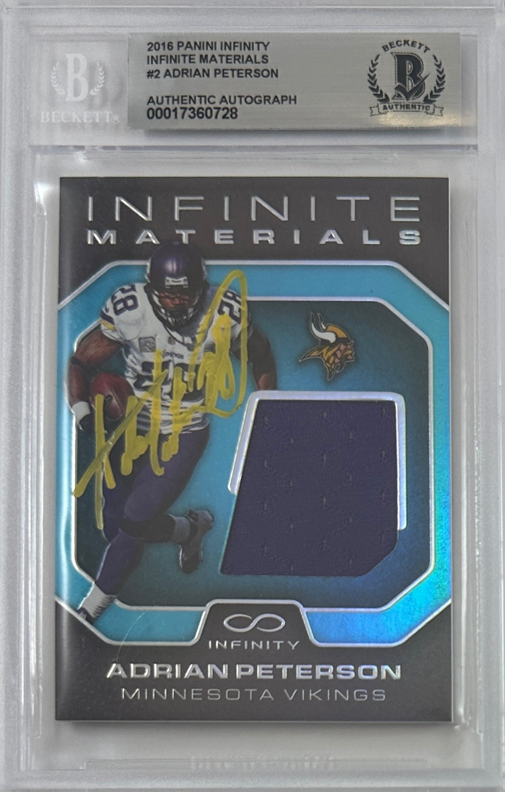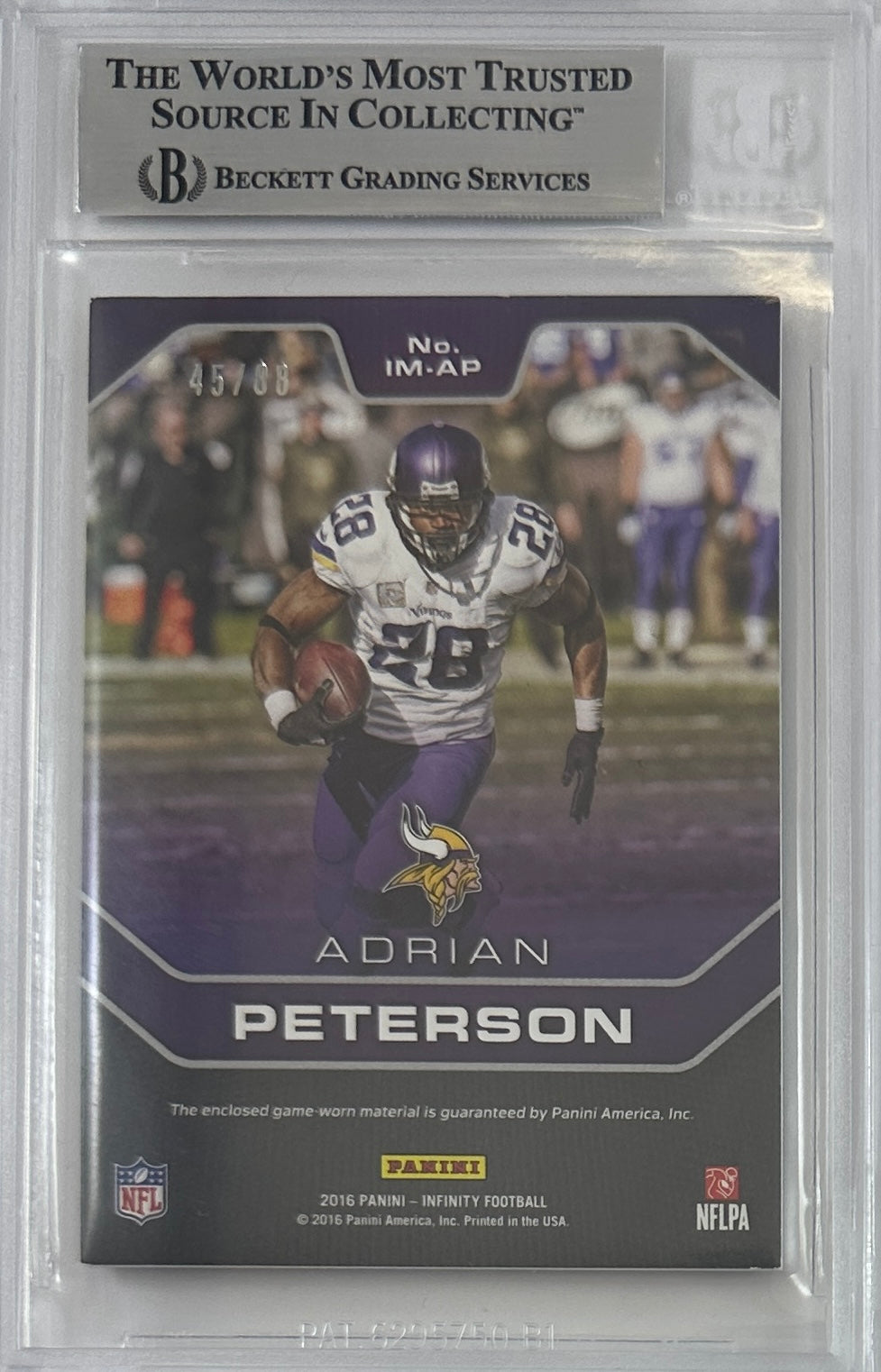 Adrian Peterson auto card 2016 Panini 45/88 NFL Minnesota Vikings BAS Encap