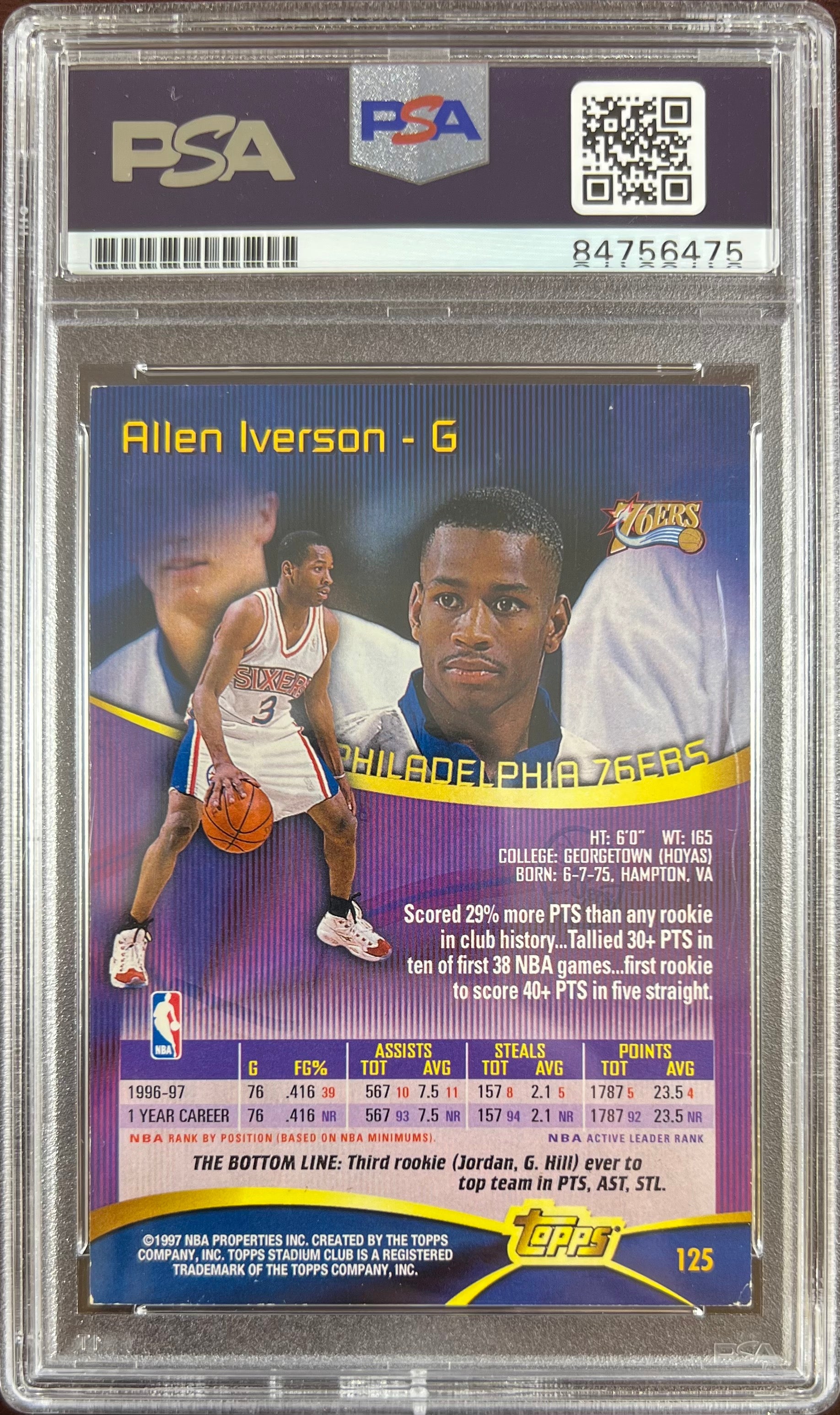 Allen Iverson auto card 1997 Topps Stadium Club Philadelphia 76ers PSA Encap