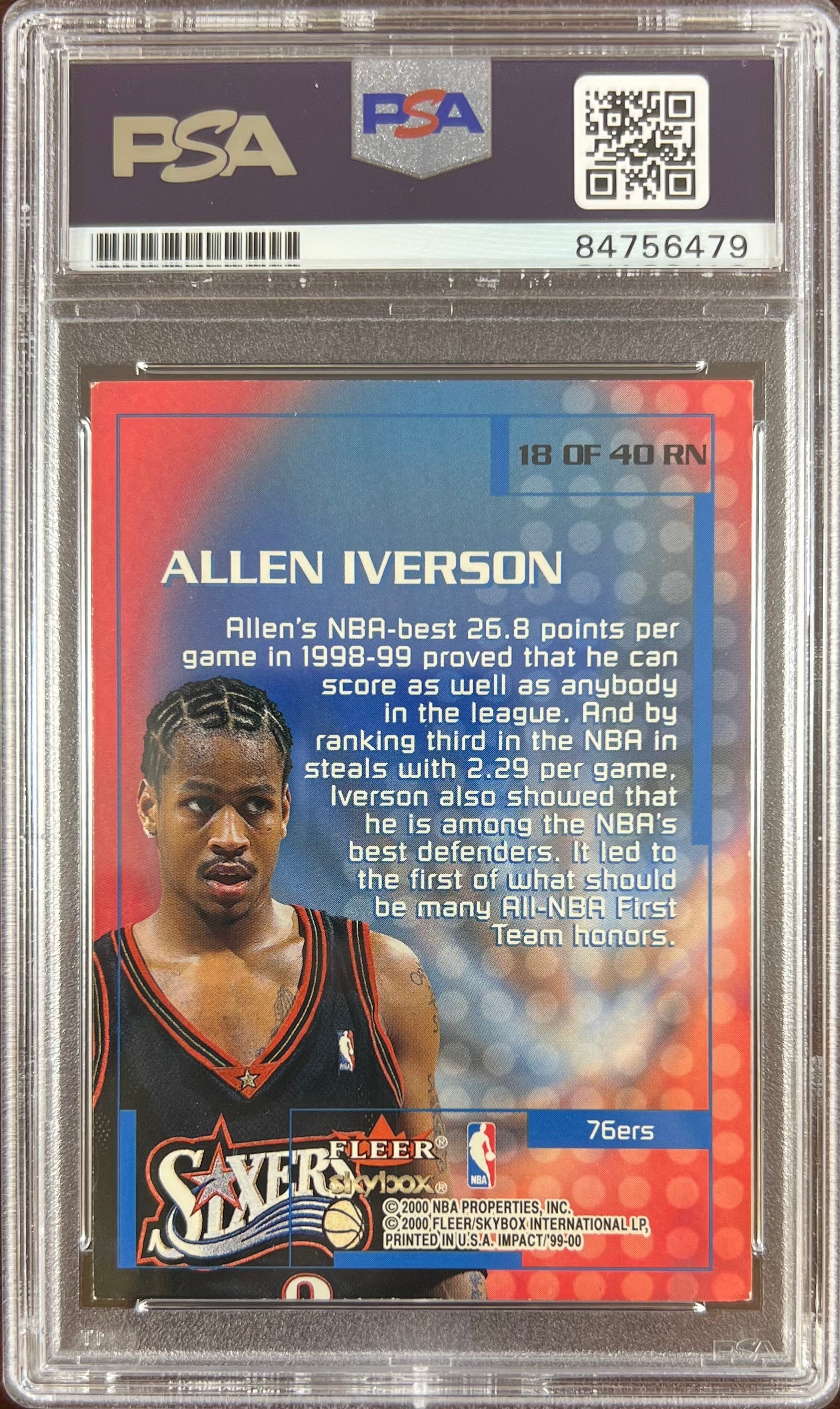 Allen Iverson auto card 2000 Fleer Impact #18 Philadelphia 76ers PSA Encap