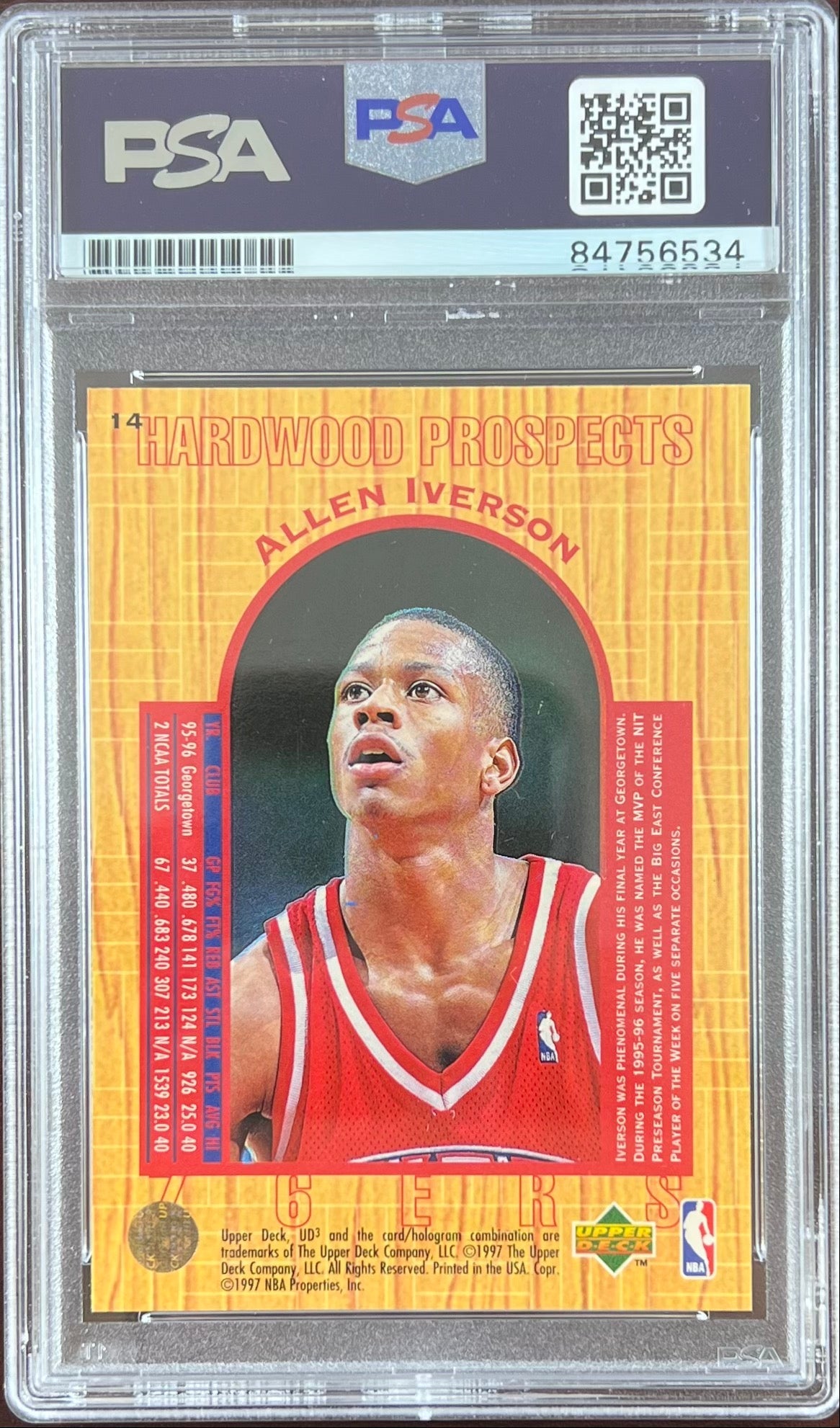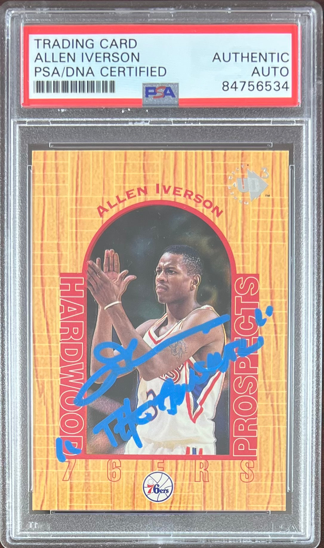 Allen Iverson auto inscribed RC 1997 Upper Deck #14 Philadelphia 76ers PSA Encap
