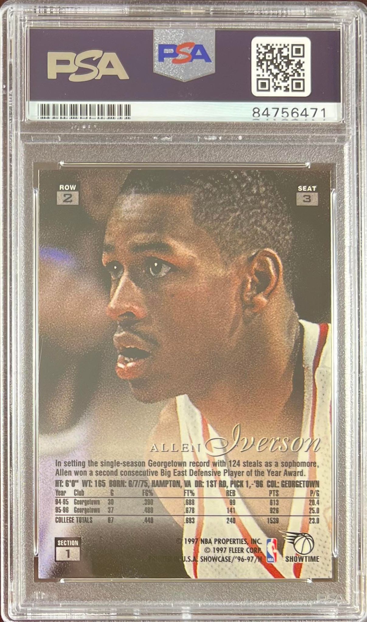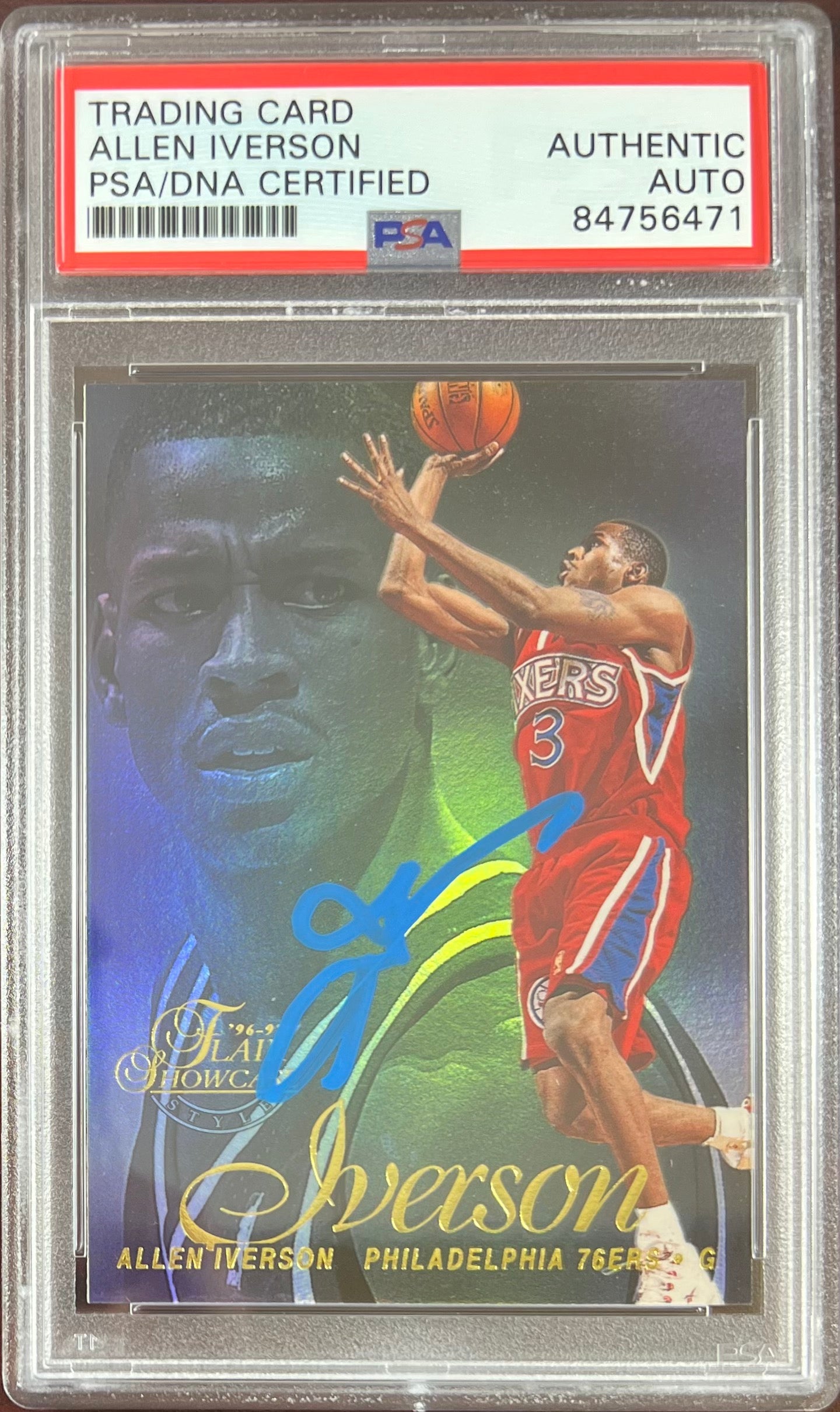 Allen Iverson auto RC 1997 Fleer Flair Showcase Philadelphia 76ers PSA Encap
