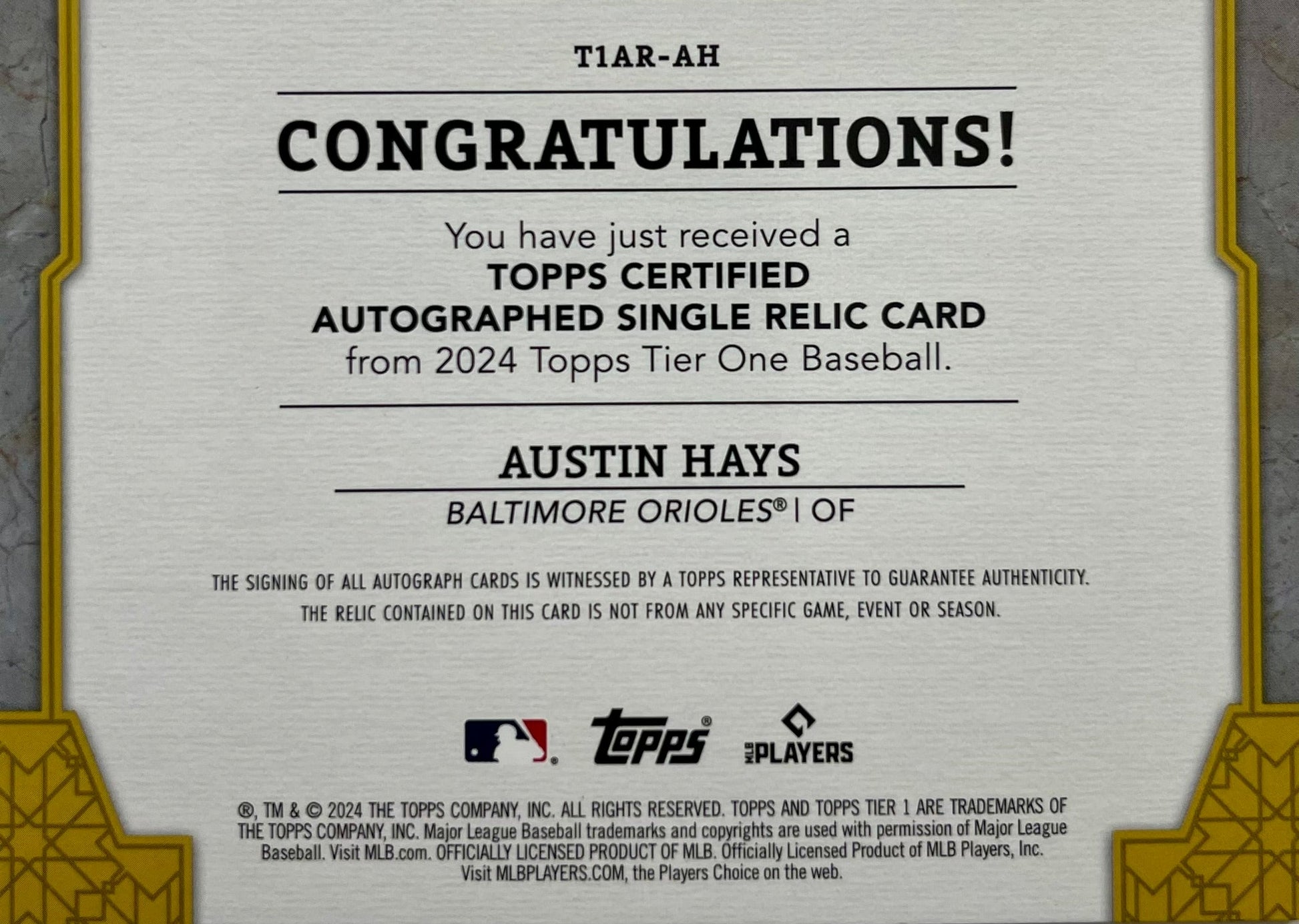 Austin Hays autographed signed card #107/199 2024 Topps Baltimore Orioles