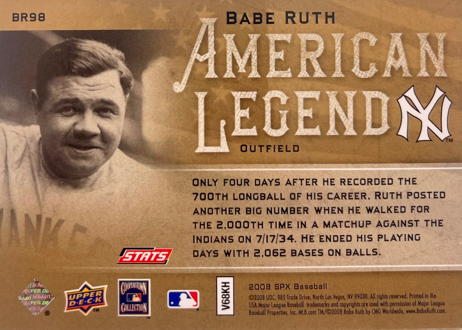 Babe Ruth Upper Deck 2008 card #1/1 New York Yankees