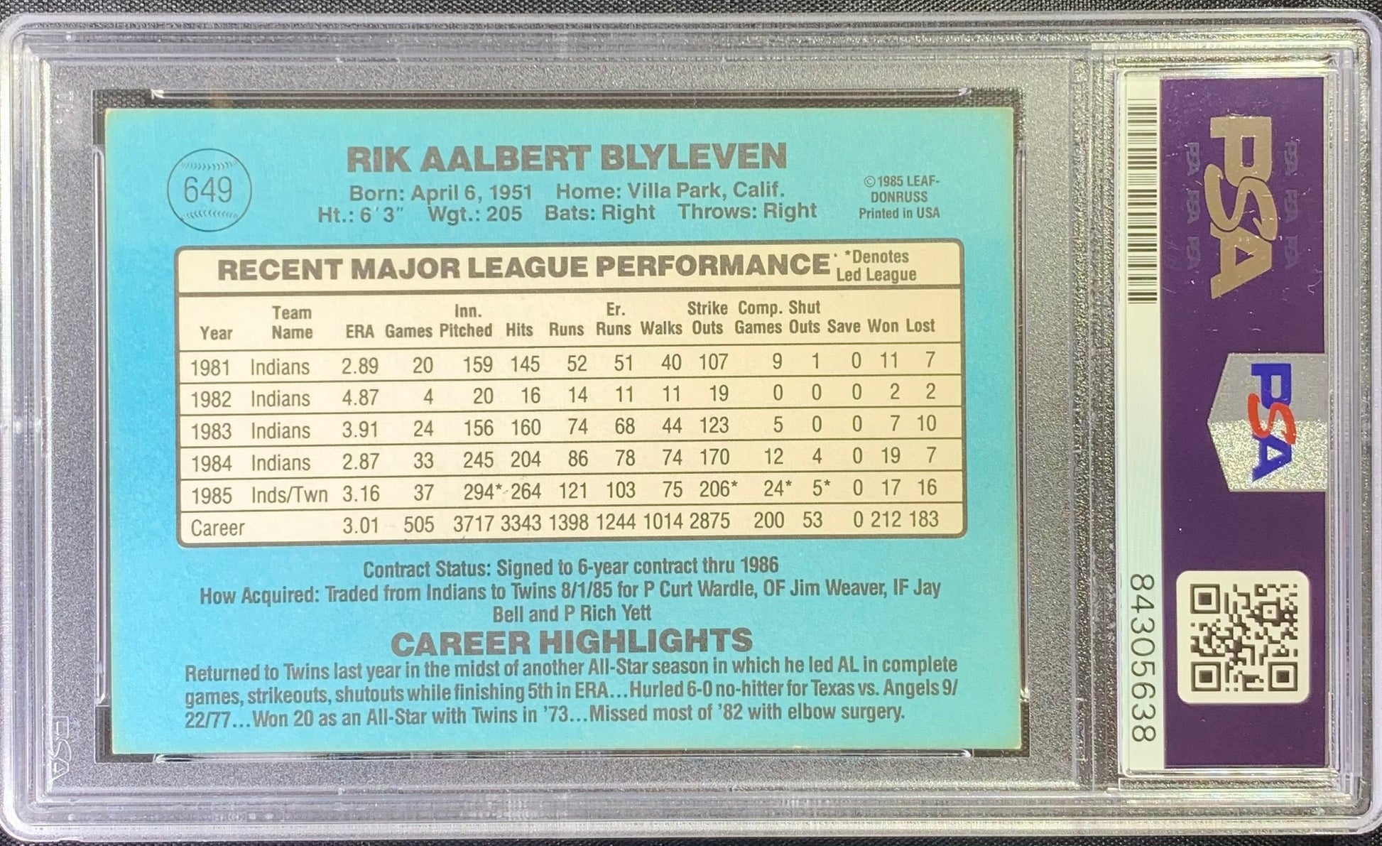 Bert Blyleven auto card 1986 Donruss #649 MLB Minnesota Twins PSA Encapsulated