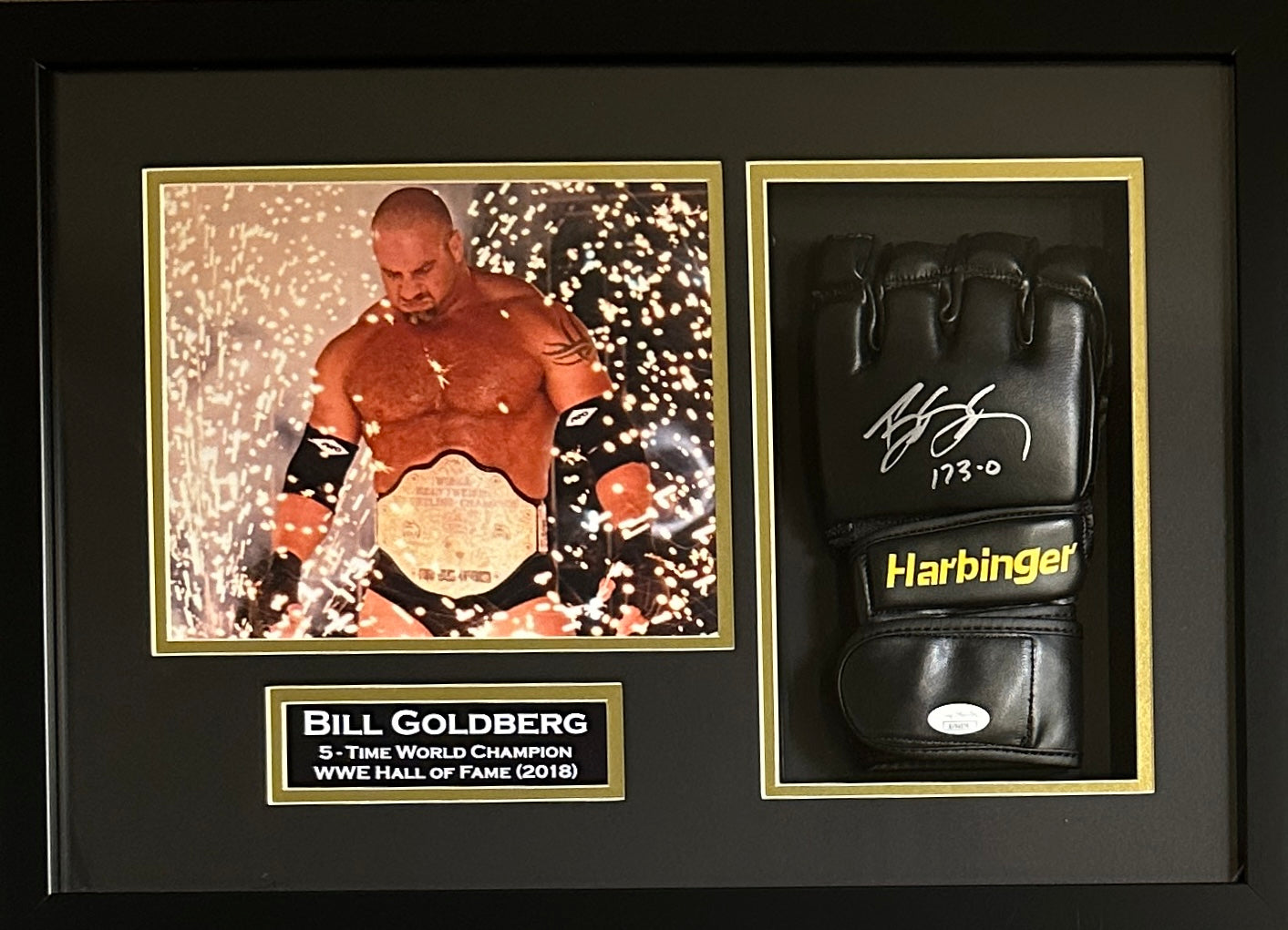 Bill Goldberg autographed inscribed framed glove WWE Roman Reigns JSA COA