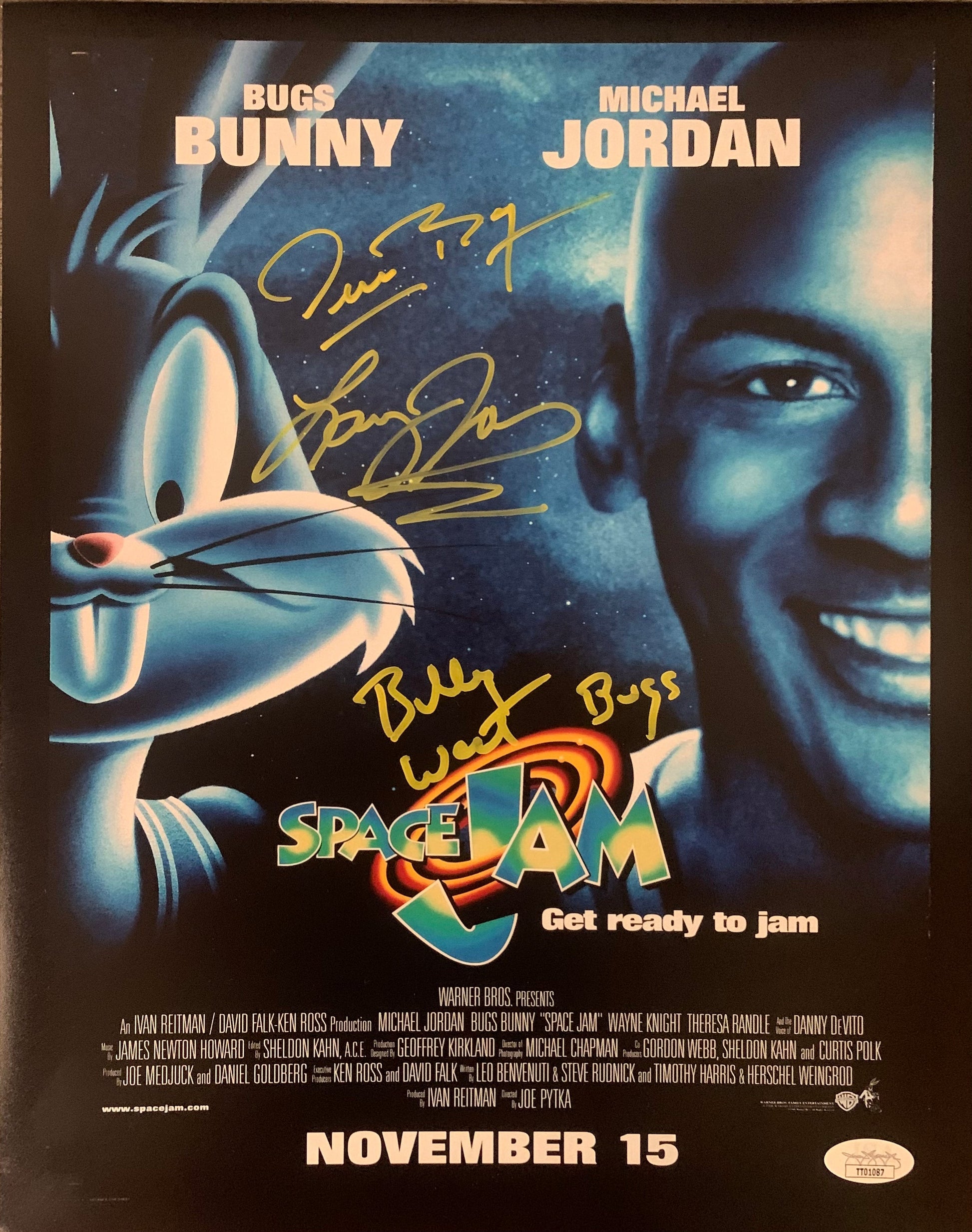 Billy West Larry Johnson Muggsy Bogues signed 11x14 photo Space Jam JSA Witness