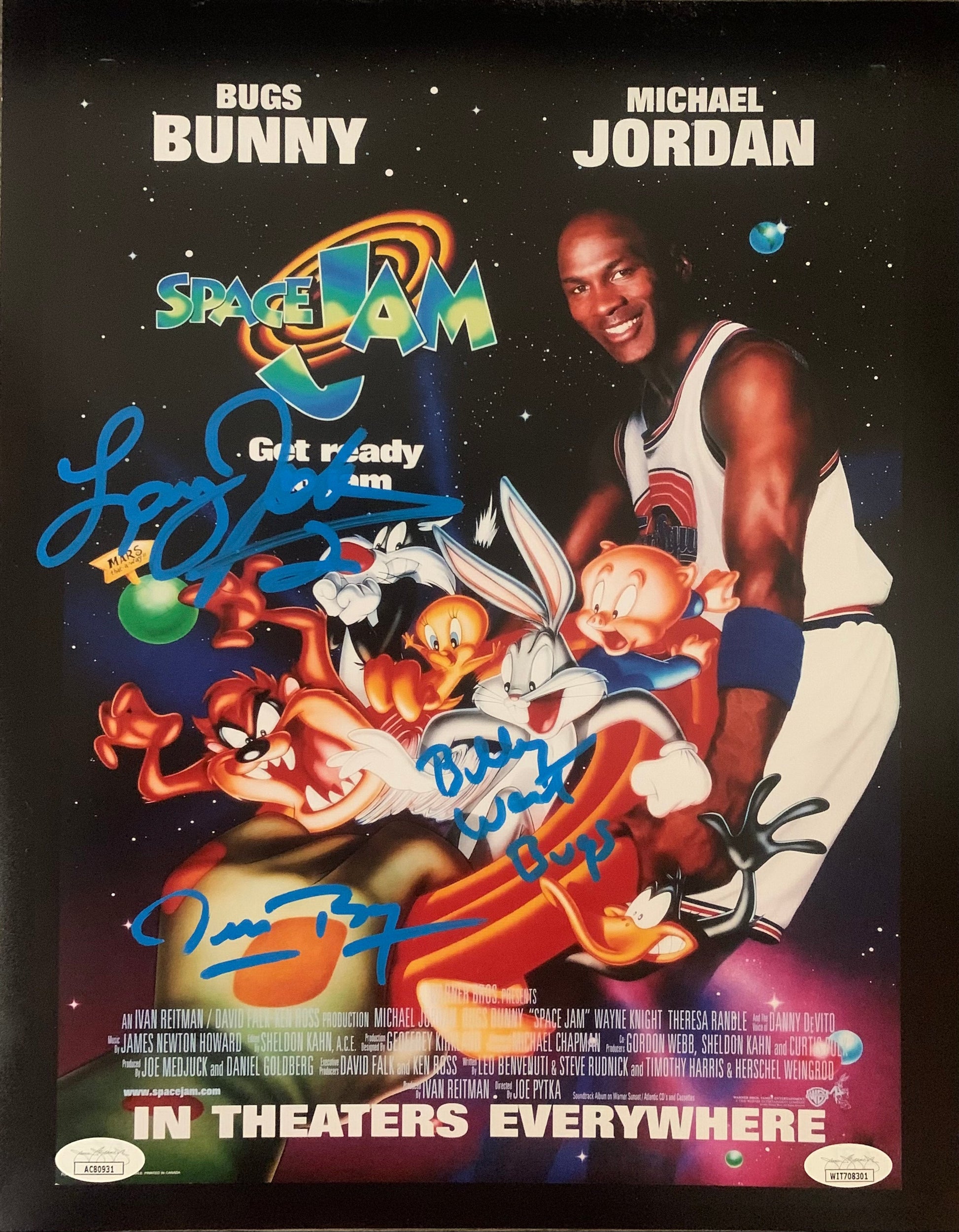 Billy West Larry Johnson Muggsy Bogues signed 11x14 photo Space Jam JSA Witness