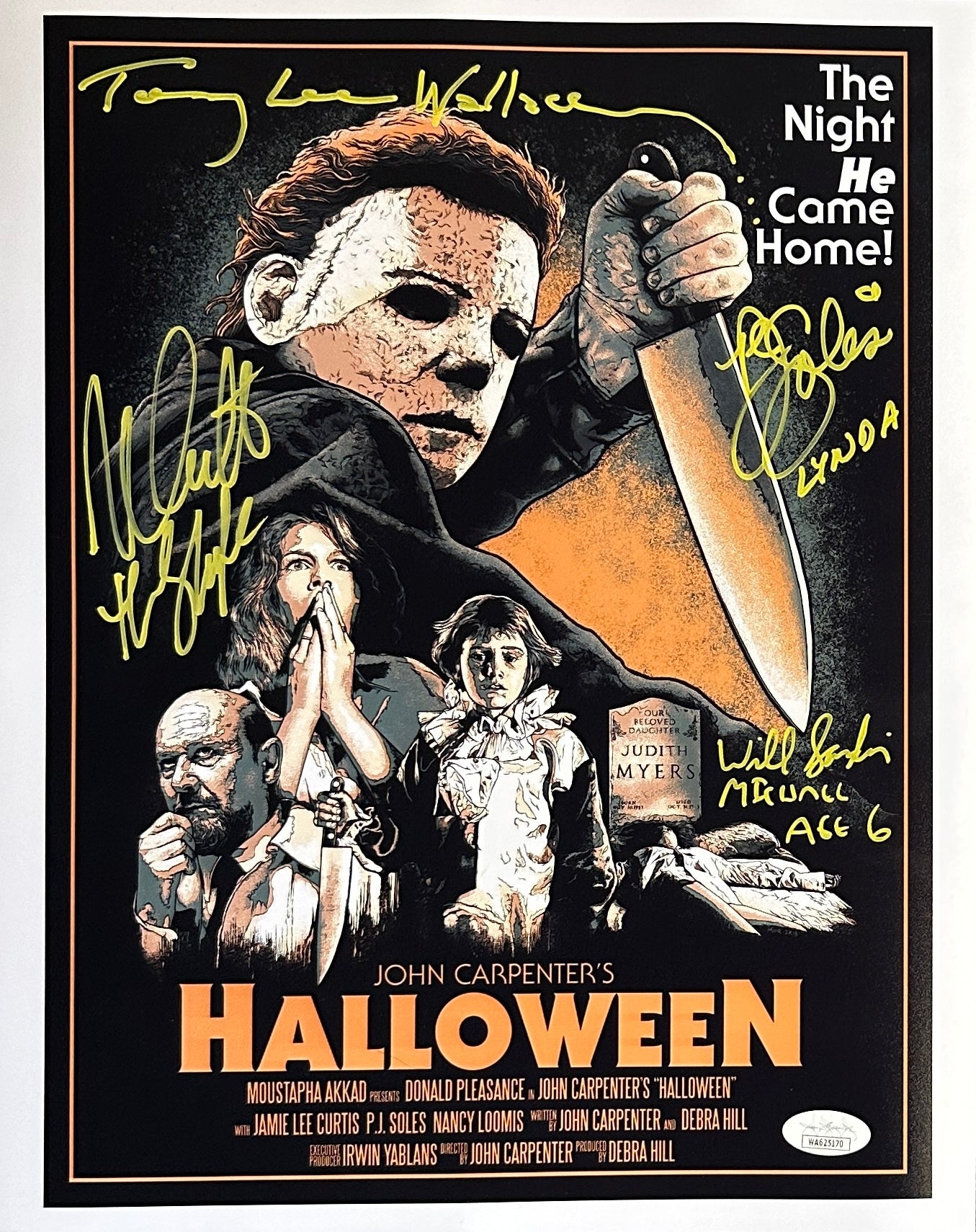 Cast signed inscribed 11x14 photo Halloween JSA COA Wallace Castle Soles Sandin