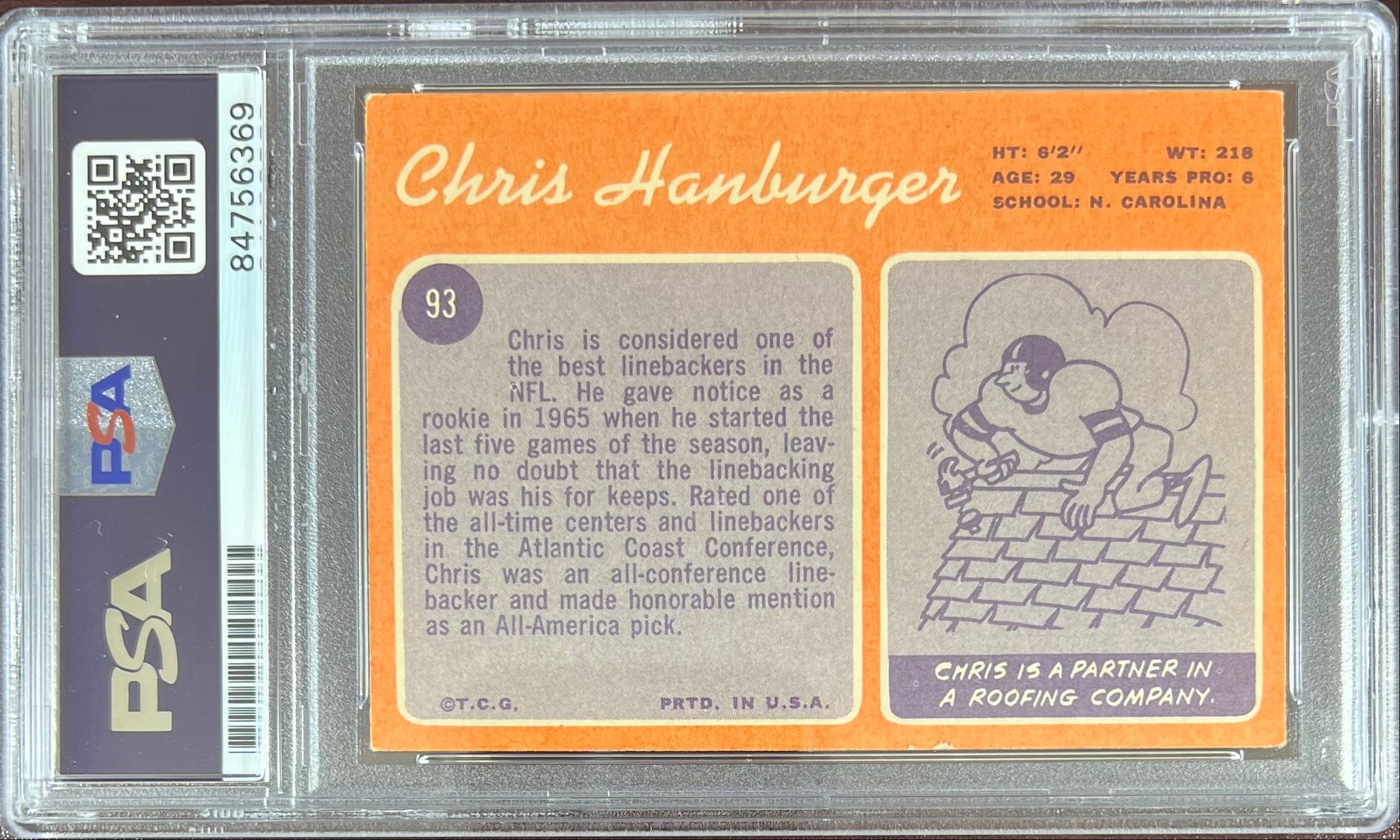 Chris Hanburger auto inscribed 1970 Topps #93 Gem Mint 10 card PSA Encapsulated