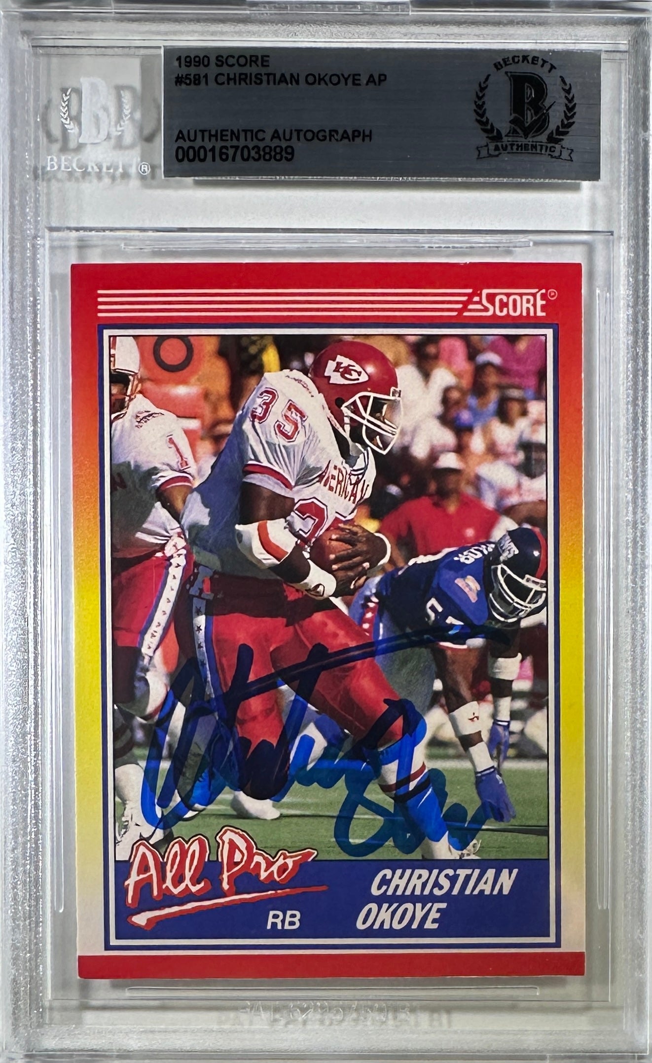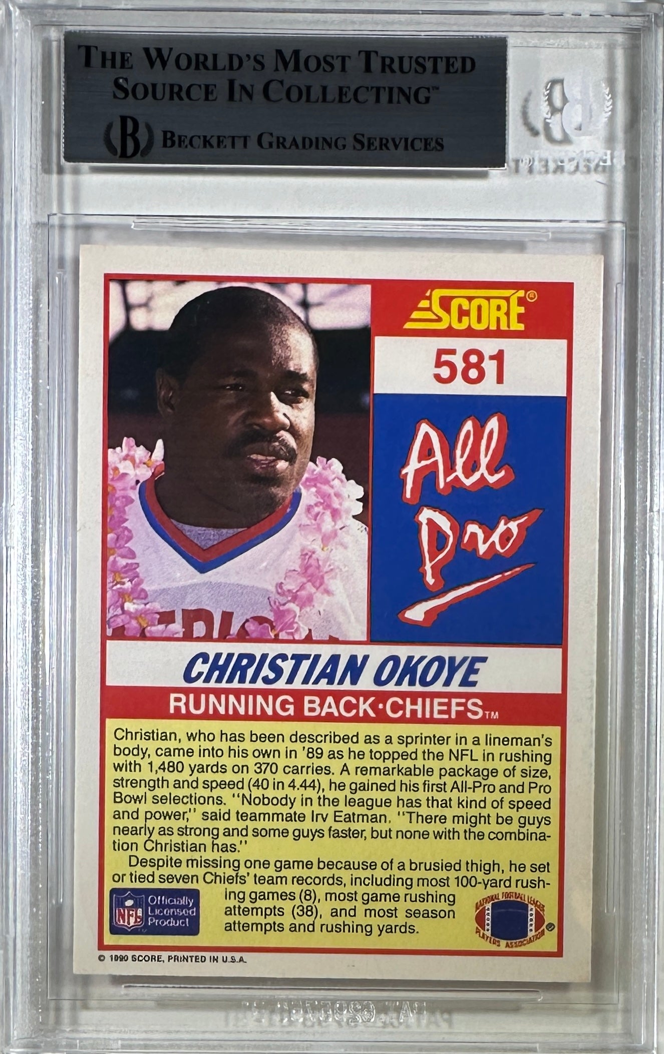 Christian Okoye auto Score 1990 #581 Kansas City Chiefs BAS Encap card