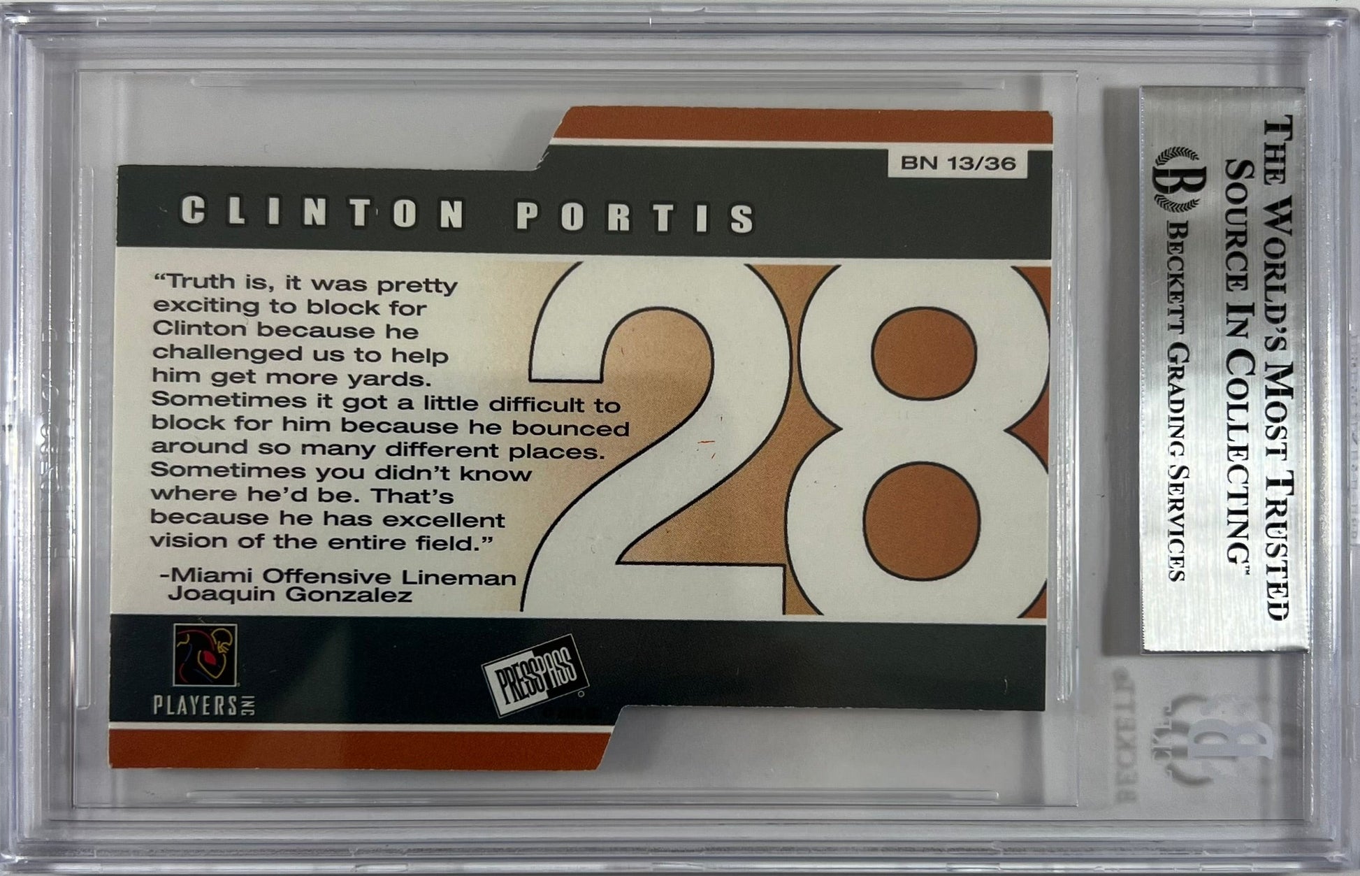 Clinton Portis autographed signed PressPass #13 Miami Hurricanes BAS Encap RC
