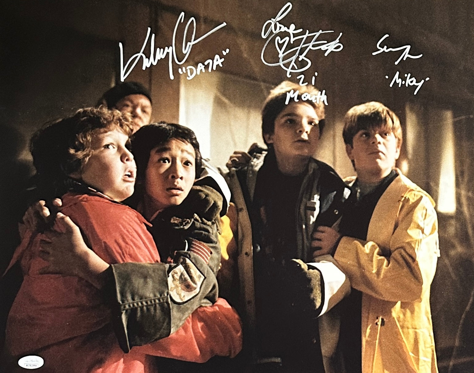 Corey Feldman Sean Astin Jonathan KeQuan signed insc 16x20 photo JSA COA Goonies