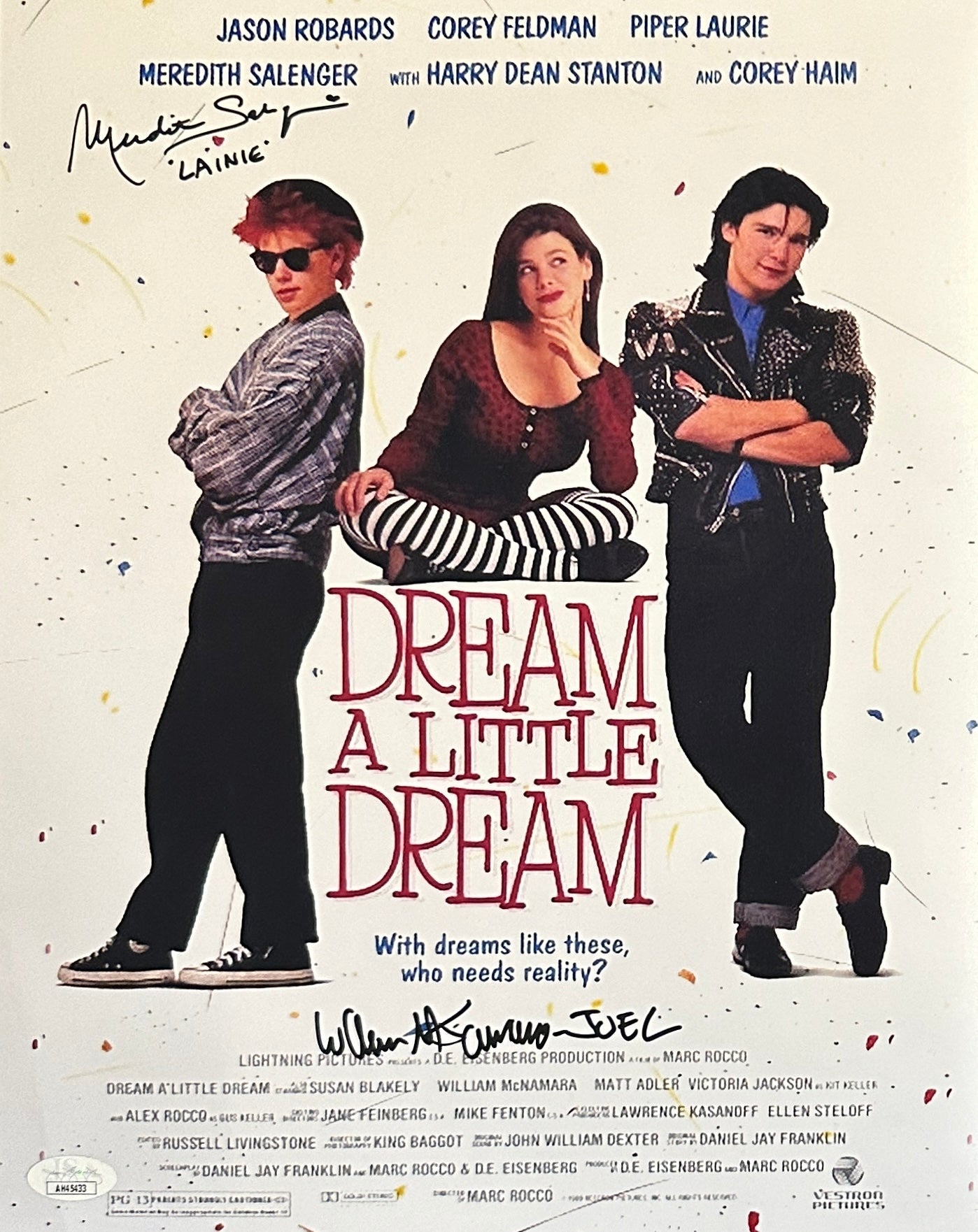 Dream a Little Dream cast auto insc 11x14 photo JSA COA Salenger McNamara