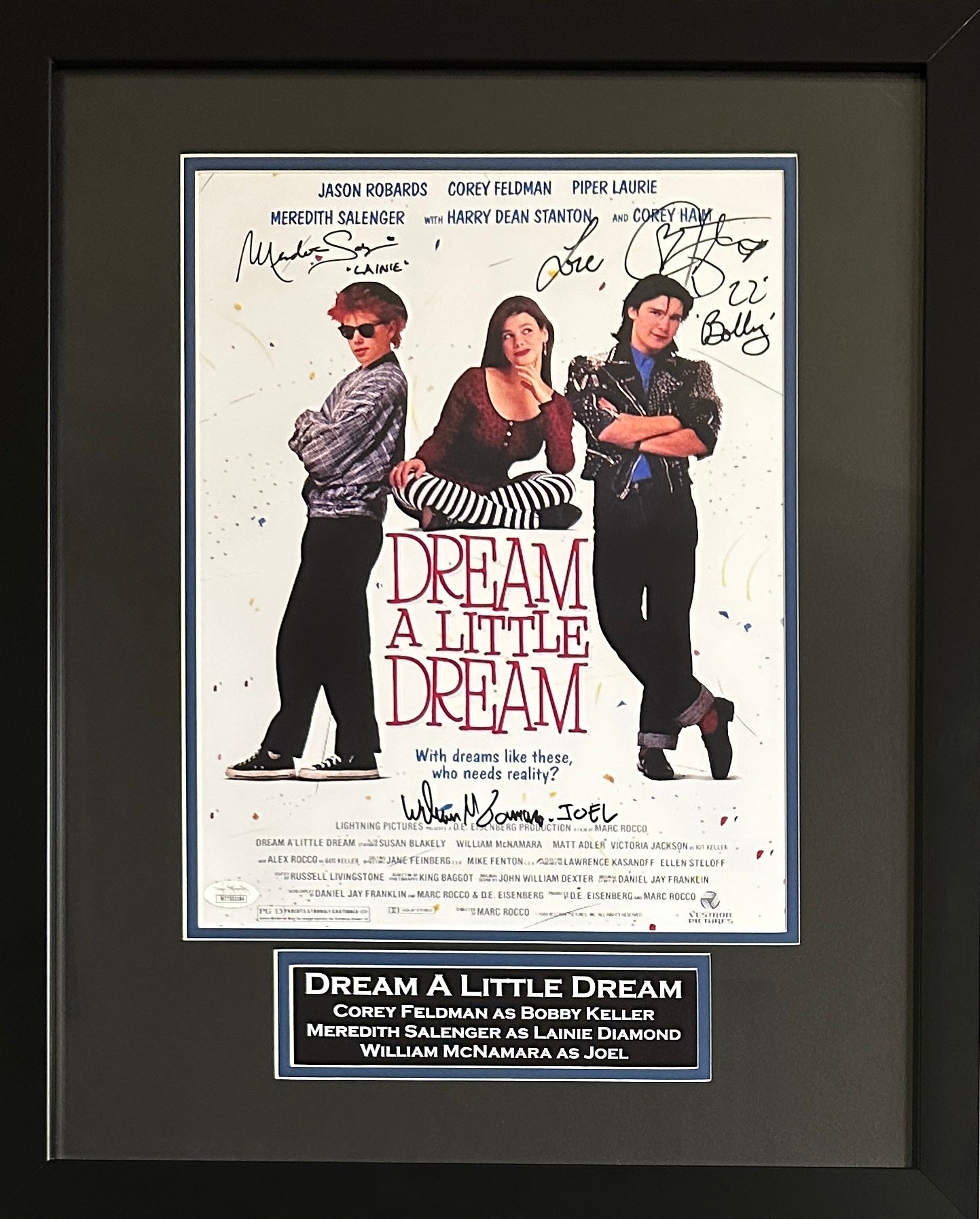Dream a Little Dream cast auto insc framed 11x14 JSA Feldman Salenger McNamara