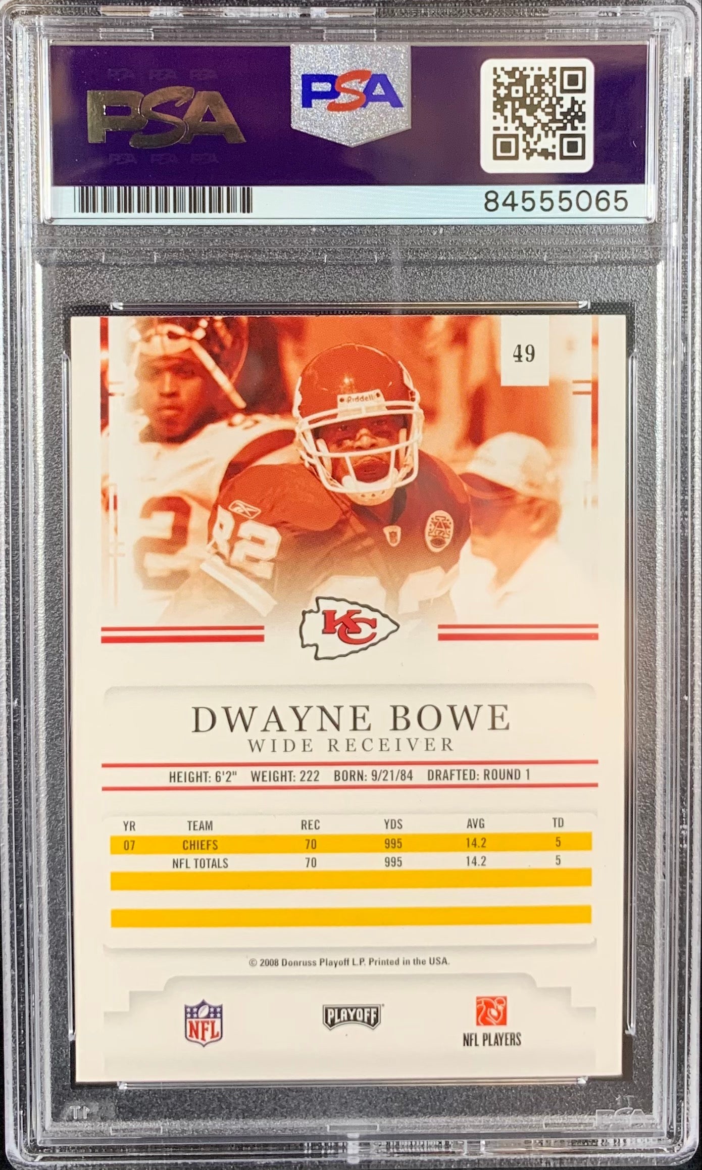 Dwayne Bowe auto 2008 Playoff Prestige card Kansas City Chiefs PSA Encapsulated