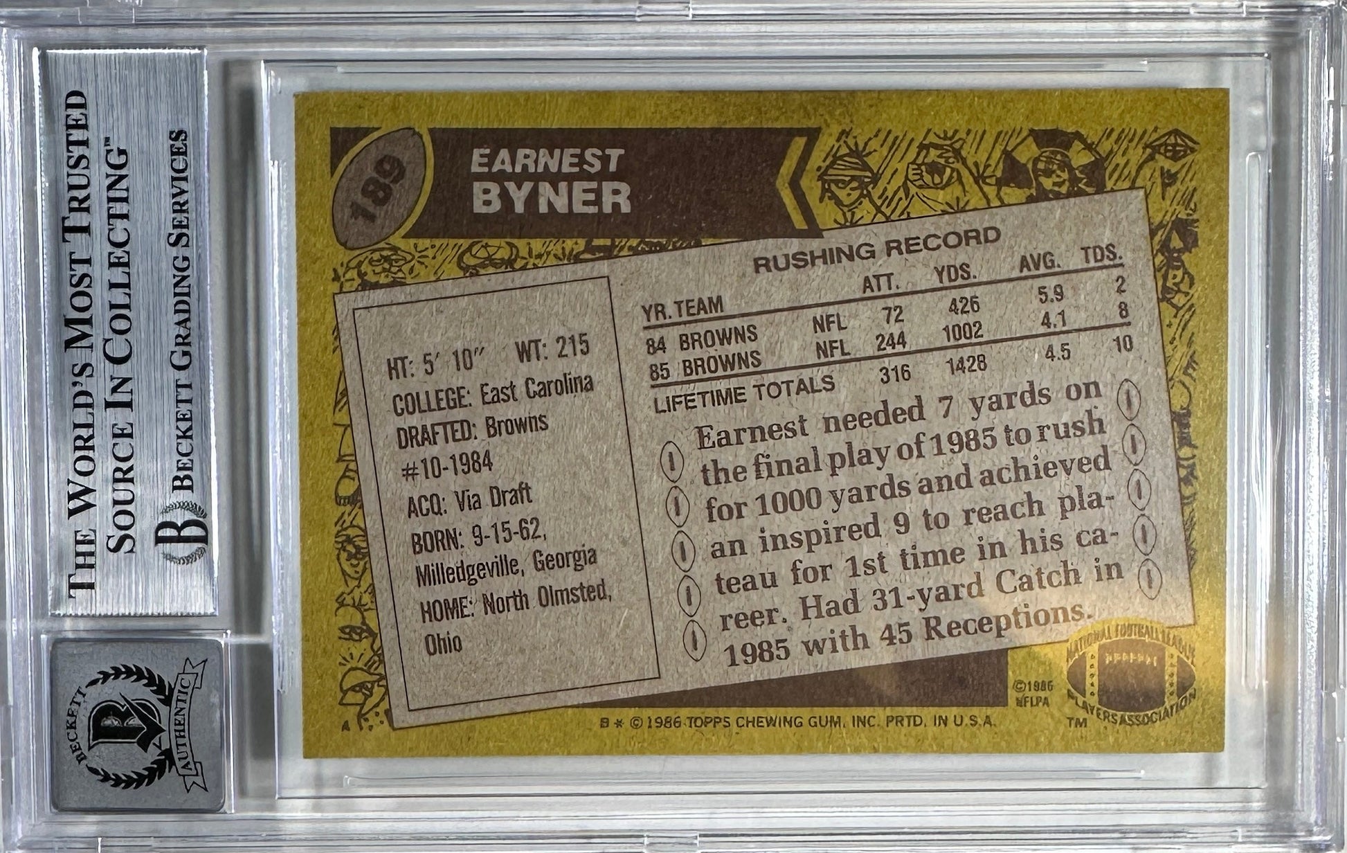 Earnest Byner auto signed 1986 Topps card #189 Cleveland Browns BAS Encap GM 10