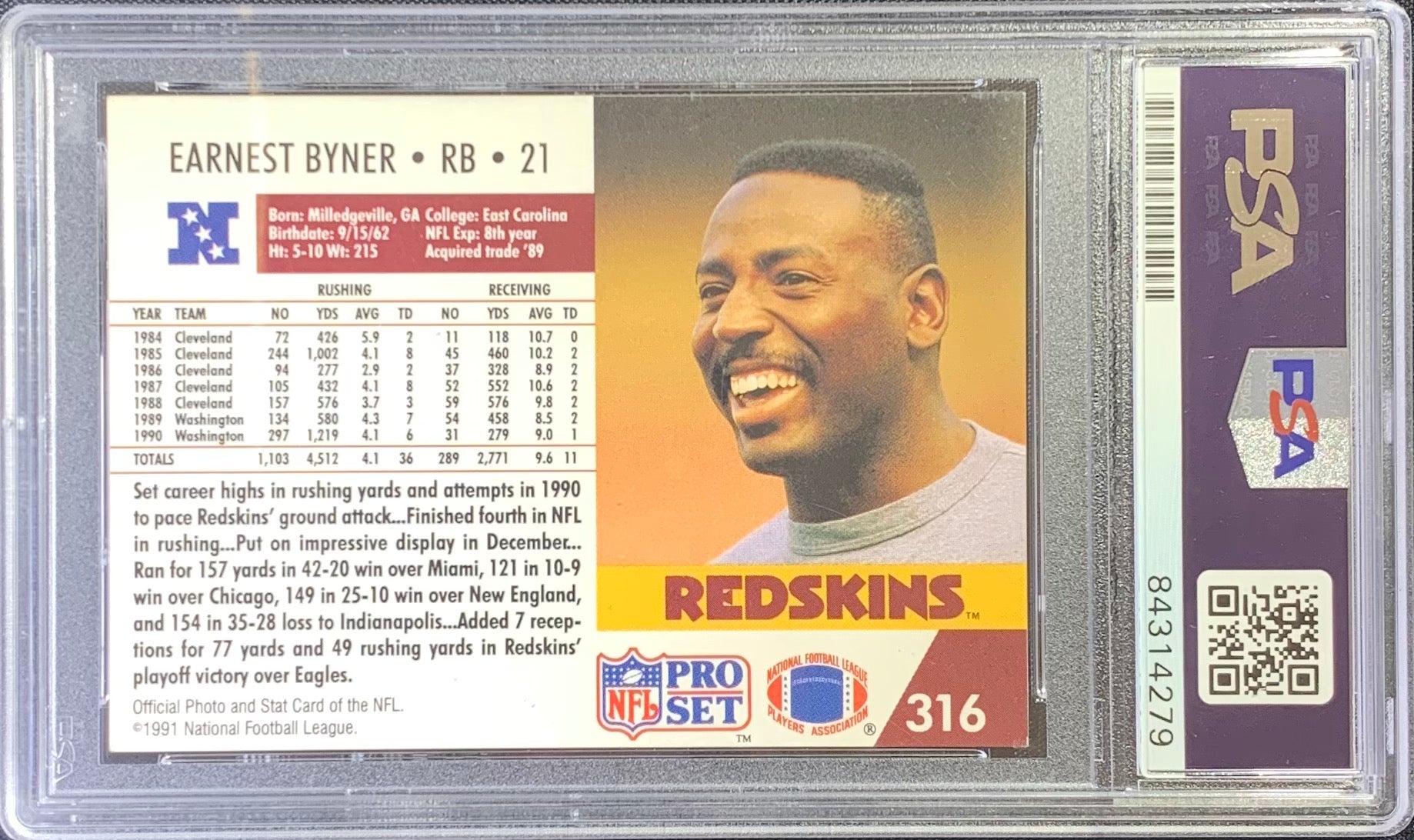 Earnest Byner auto signed Pro Set 1991 card #316 Redskins PSA Encapsulated
