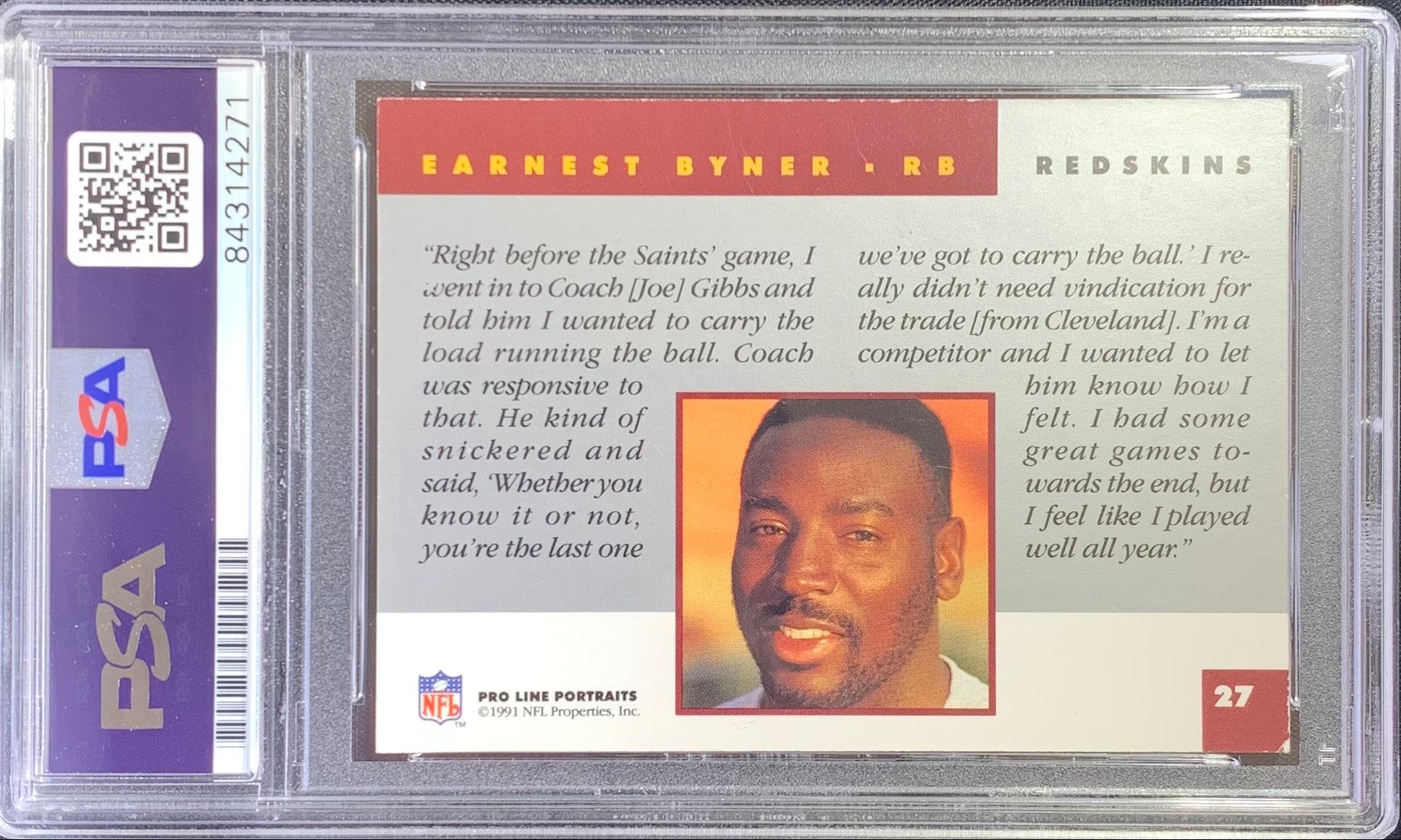 Earnest Byner autographed Pro Line 1991 card #27 Redskins PSA Encapsulated