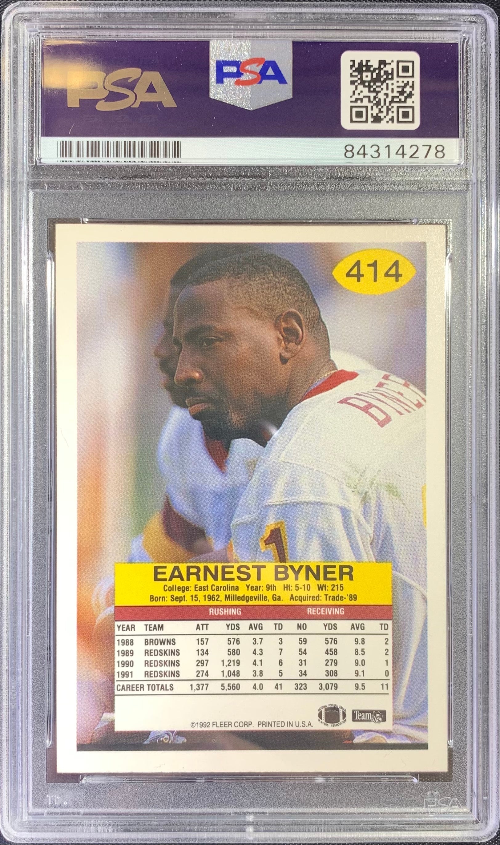 Earnest Byner autographed signed 1992 Fleer card #414 Redskins PSA Encapsulated