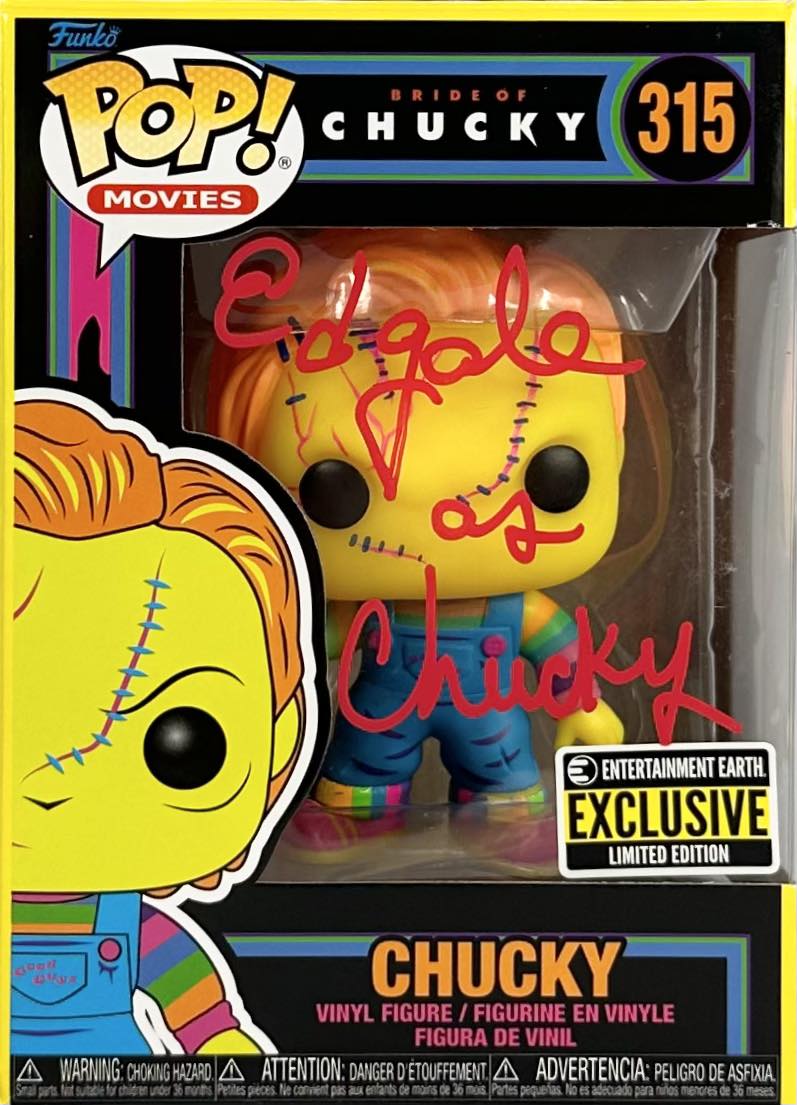 Ed Gale signed inscribed limited edition Chucky Funko Pop #315 Childs play JSA COA