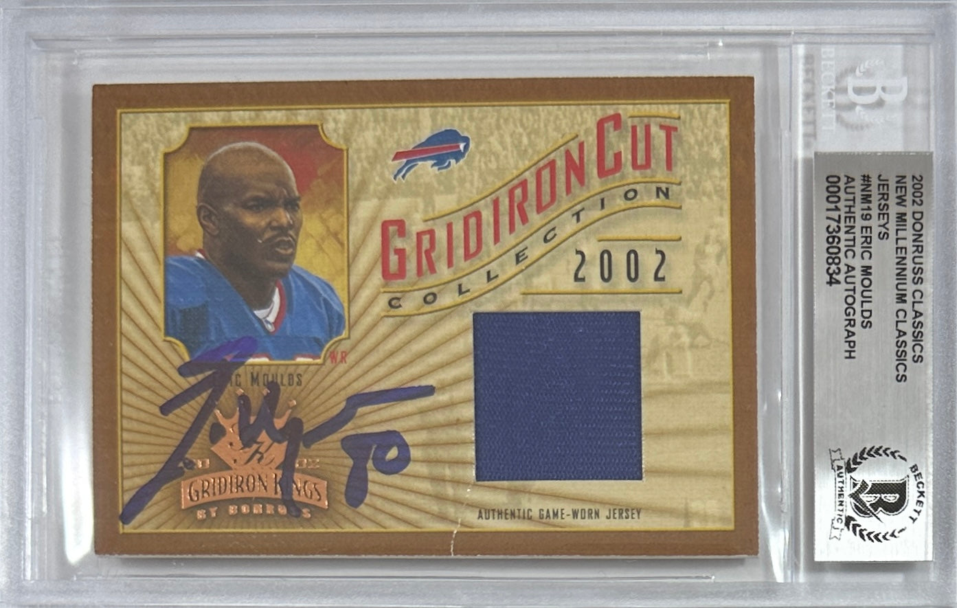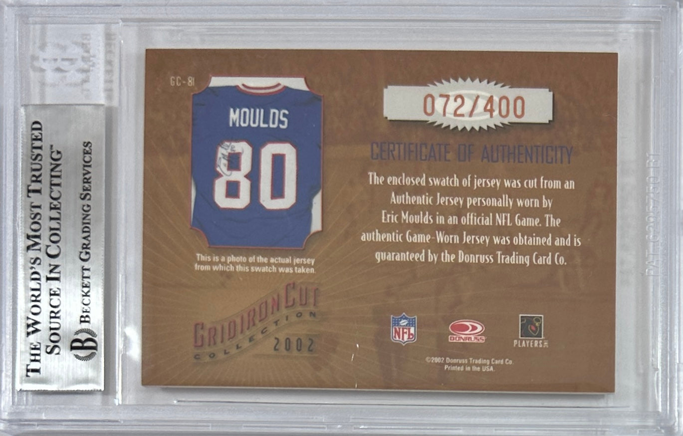 Eric Moulds auto signed Donruss 2002 #72/400 Buffalo Bills BAS game used Encap