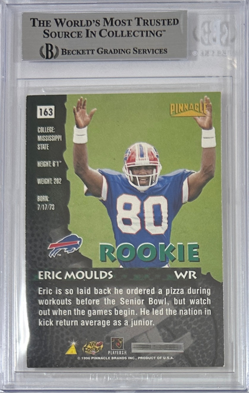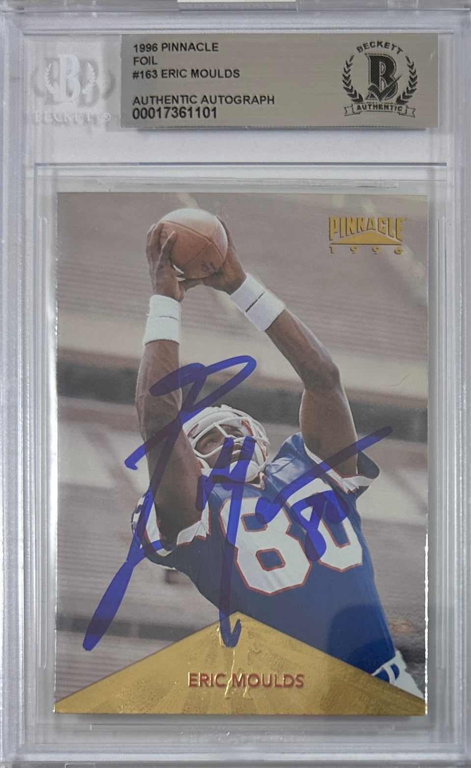 Eric Moulds autographed signed Pinnacle 1996 #163 Buffalo Bills BAS Encap RC