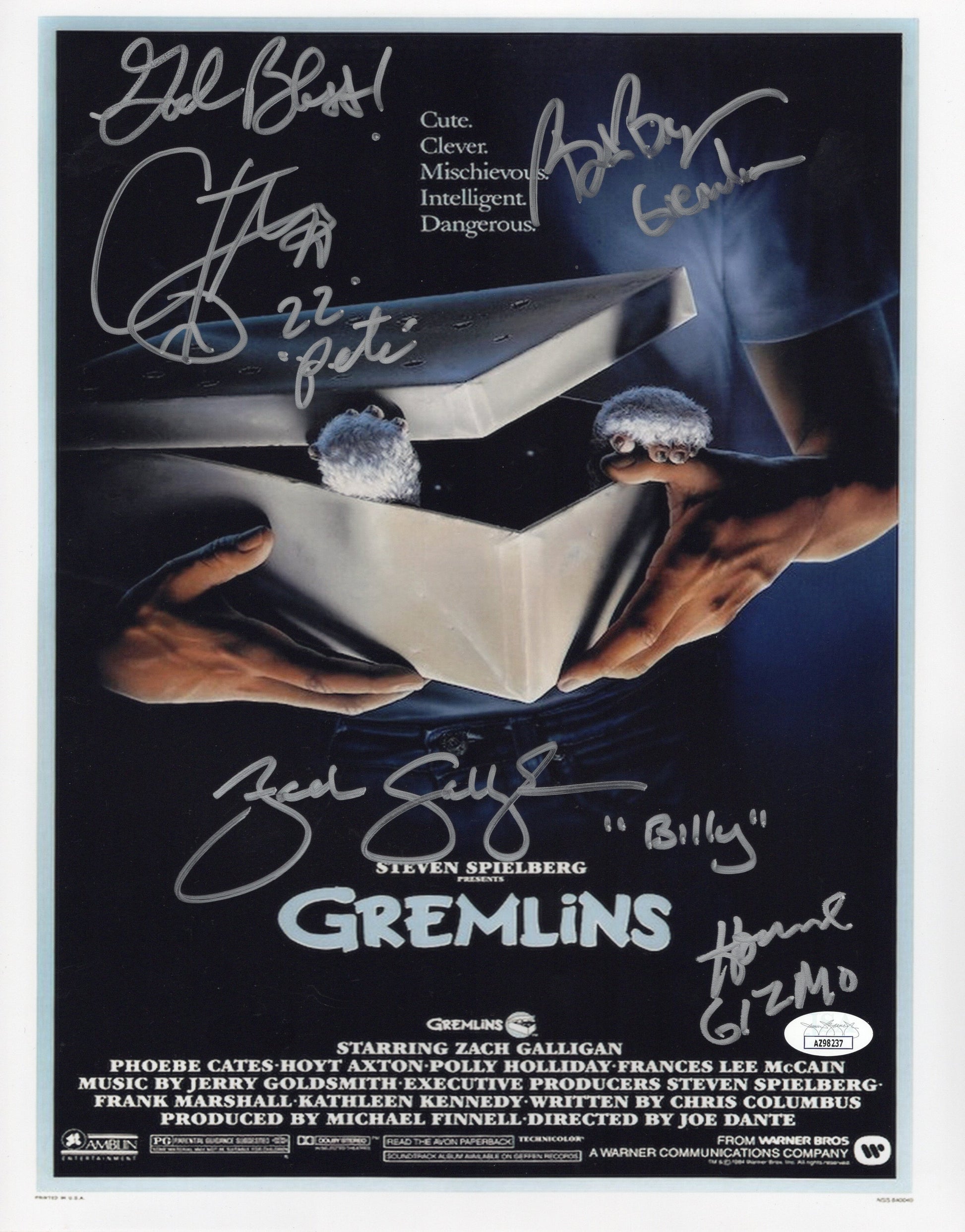 Howie Mandel Zach Galligan Corey Feldman Bob Bergen inscribed 11x14 Gremlins JSA