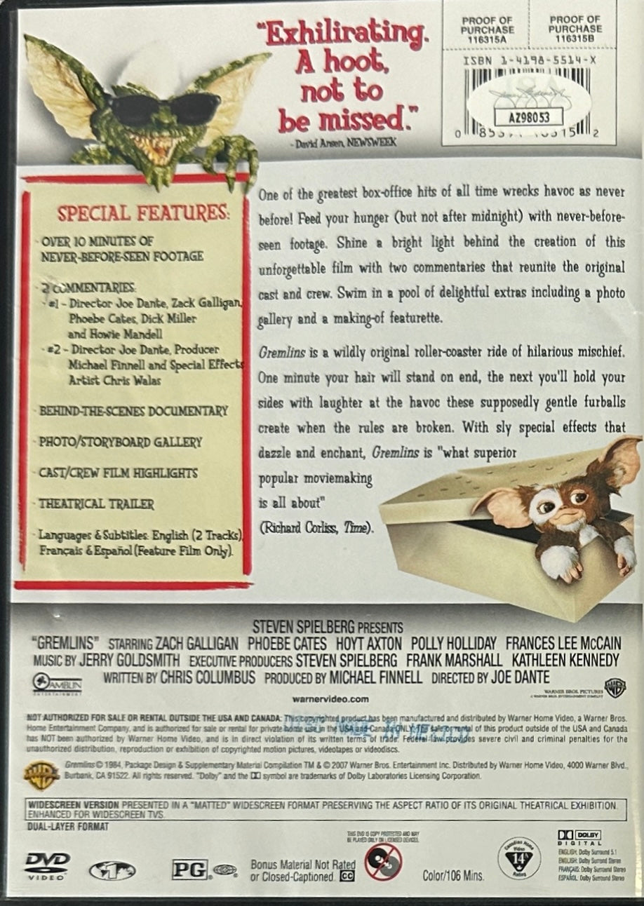 Howie Mandel Zach Galligan dual inscribed signed DVD cover Gremlins JSA COA