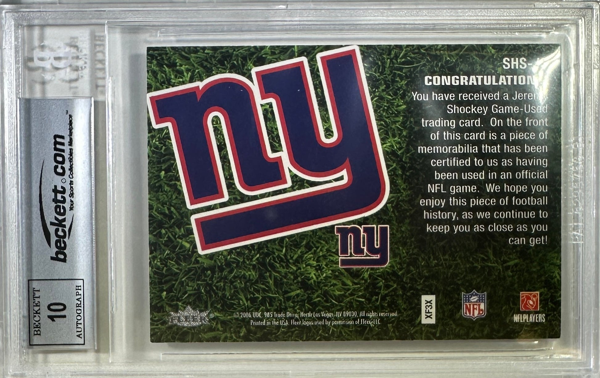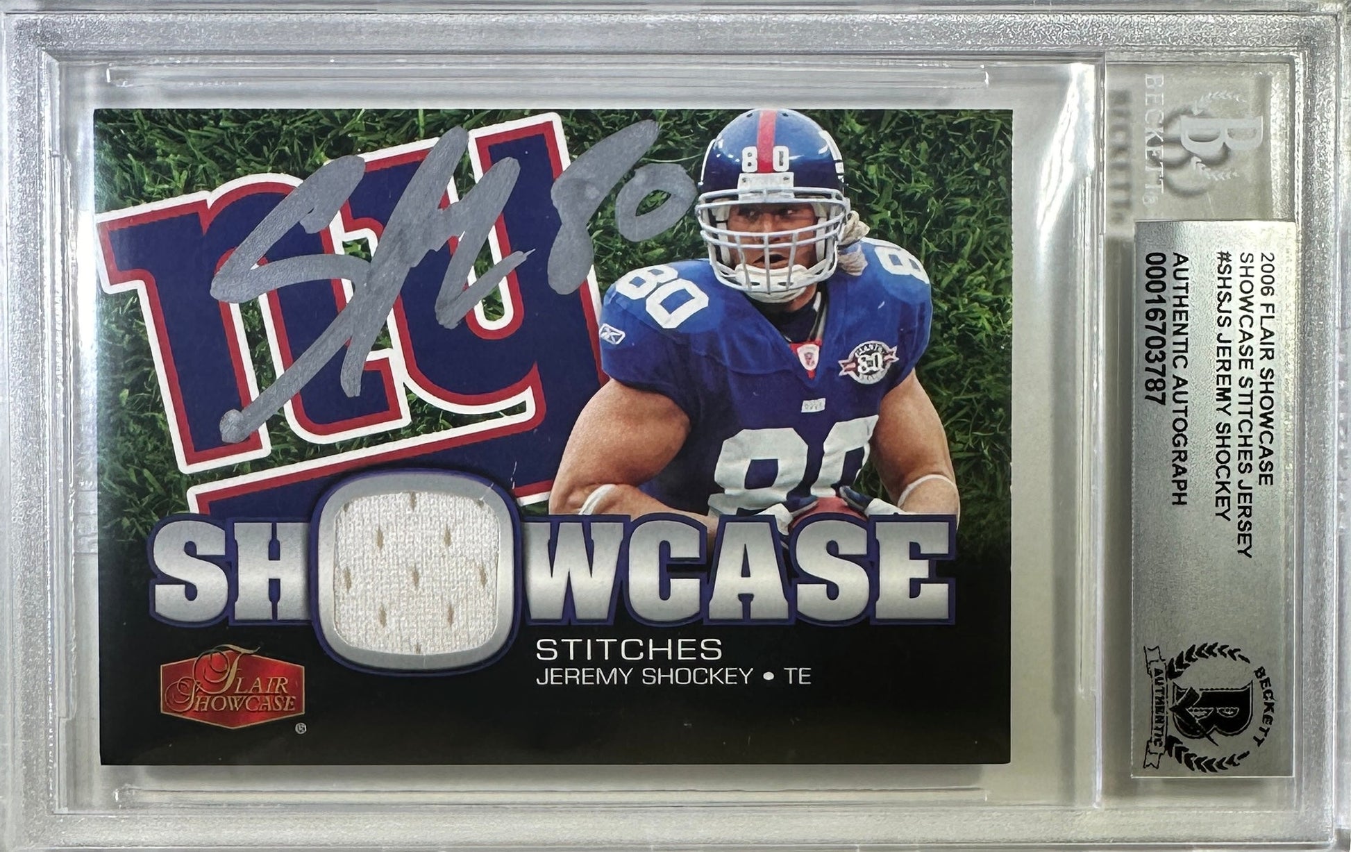 Jeremy Shockey auto Fleer 2006 card New York Giants BAS Encap Game used