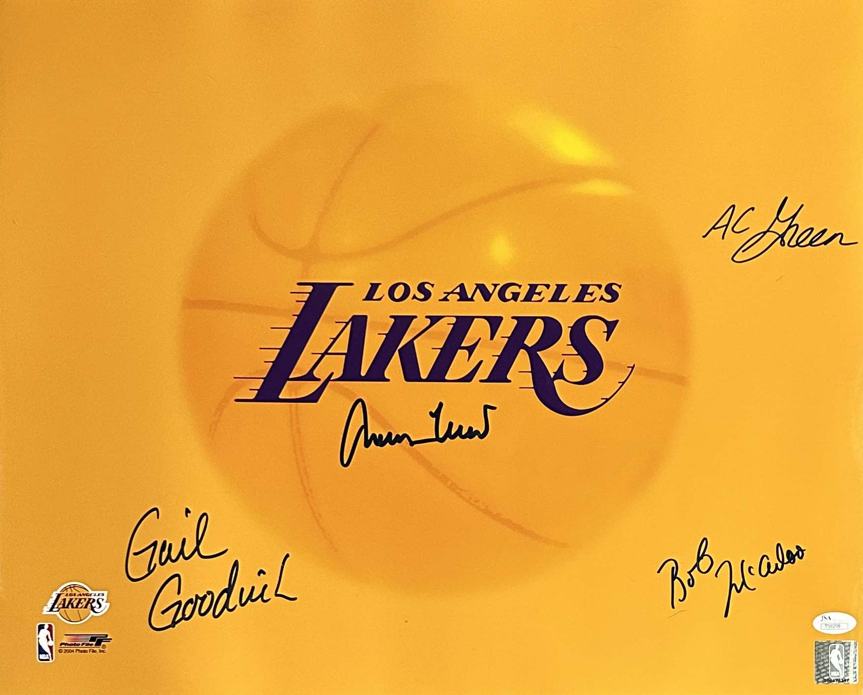 Jerry West, Gail Goodrich, Bob McAdoo, AC Green autogrphed NBA 16x20 photo JSA