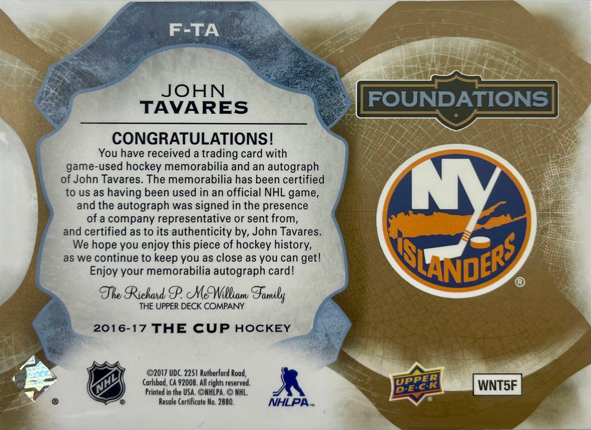 John Tavares auto card 2017 Upper Deck #3/5 Islanders NHL Game Used GU patch