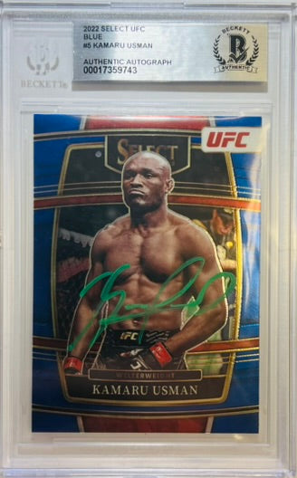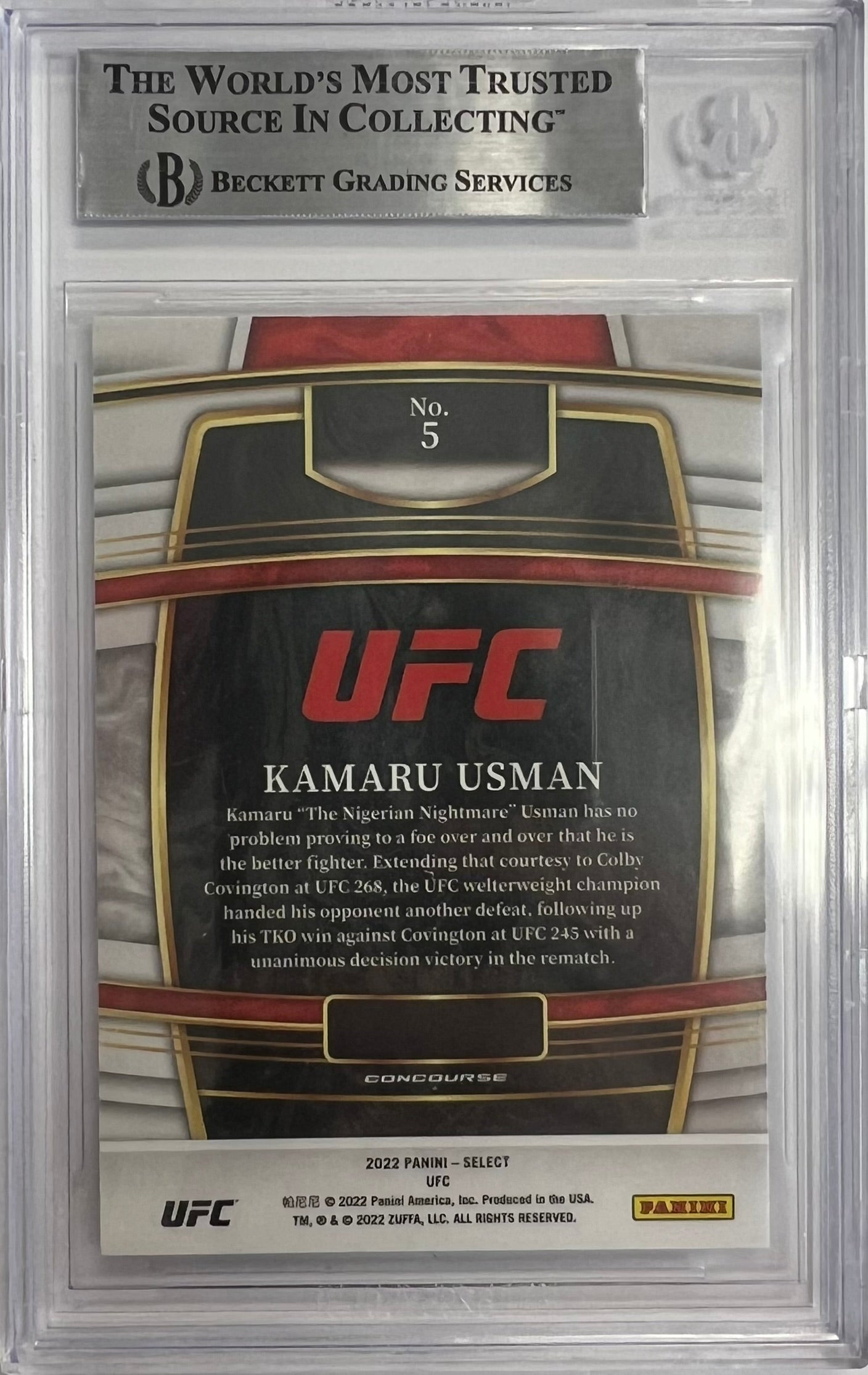 Kamaru Usman autographed 2022 Panini card #5 UFC BAS Encapsulated