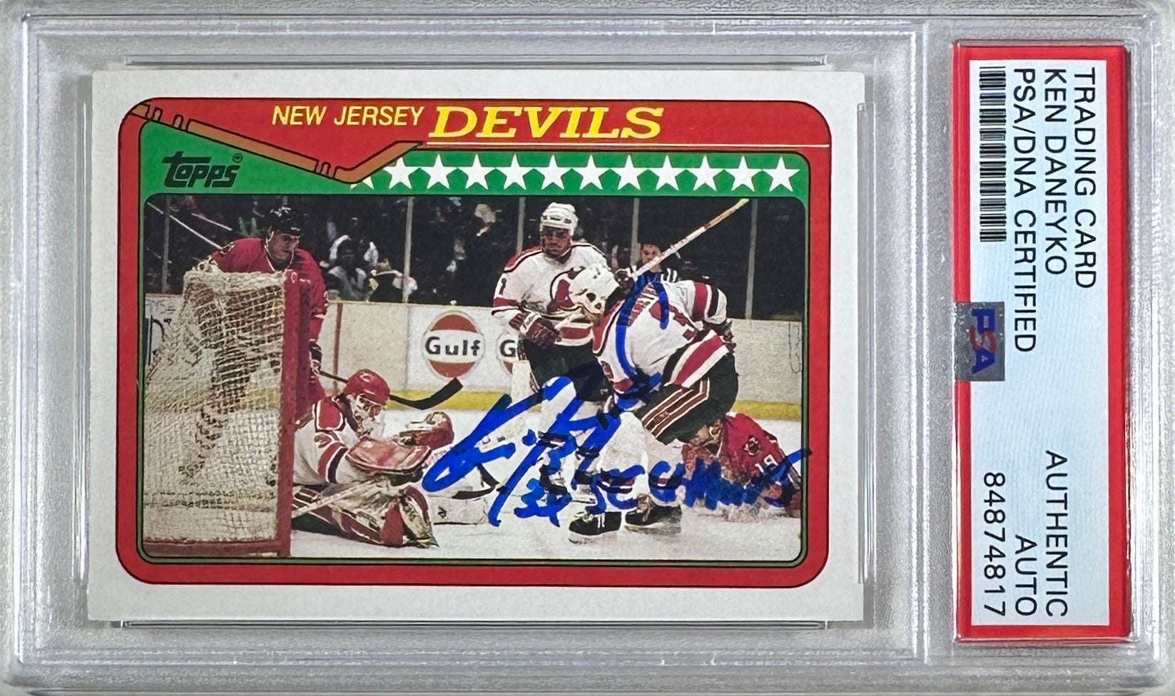 Ken Daneyko auto insc 1990 O-PEE-CHEE card PSA Encapsulated New Jersey Devils