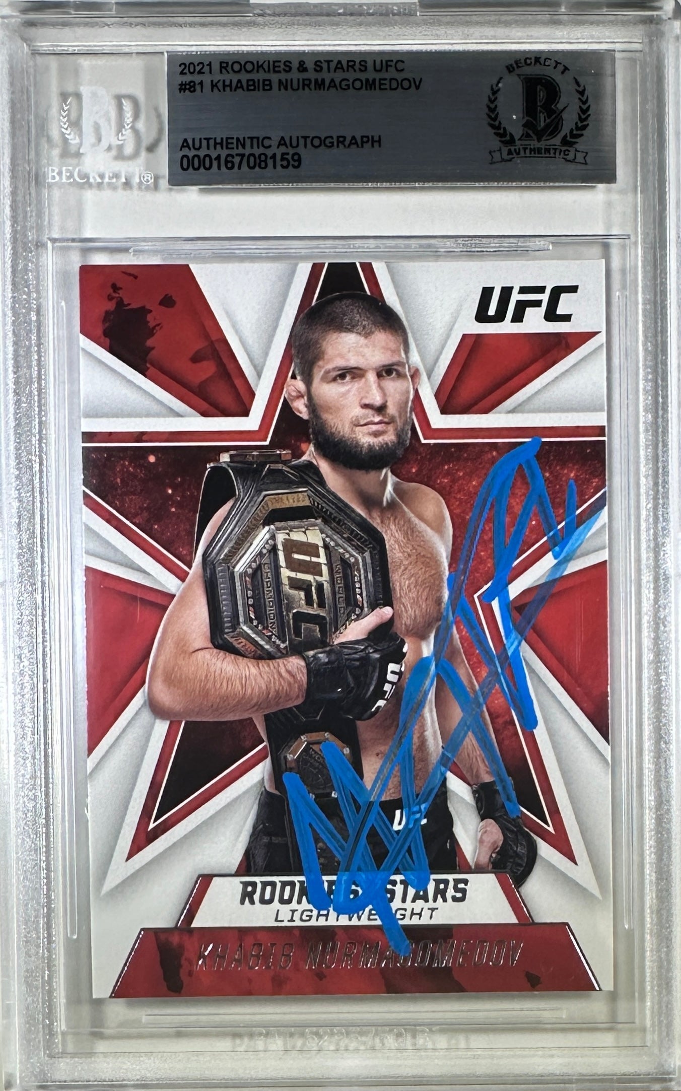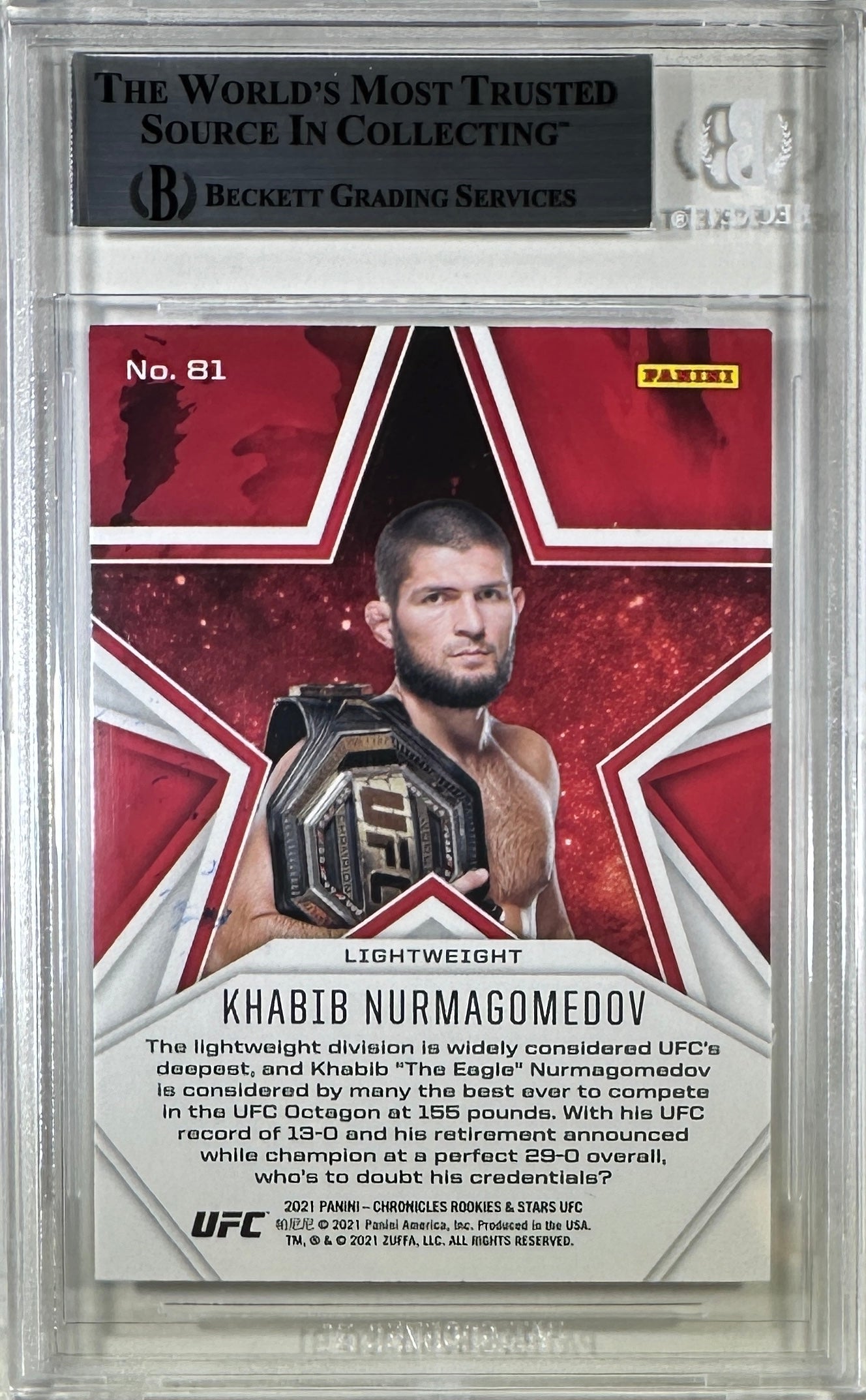 Khabib Nurmagomedov autographed 2021 Panini card #81 UFC BAS Encapsulated