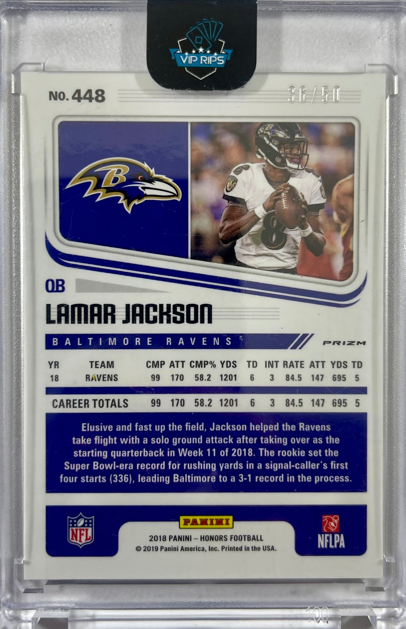 Lamar Jackson NFL Panini 2019 #488 36/50 Jacksonville Jaguars Prizm RC