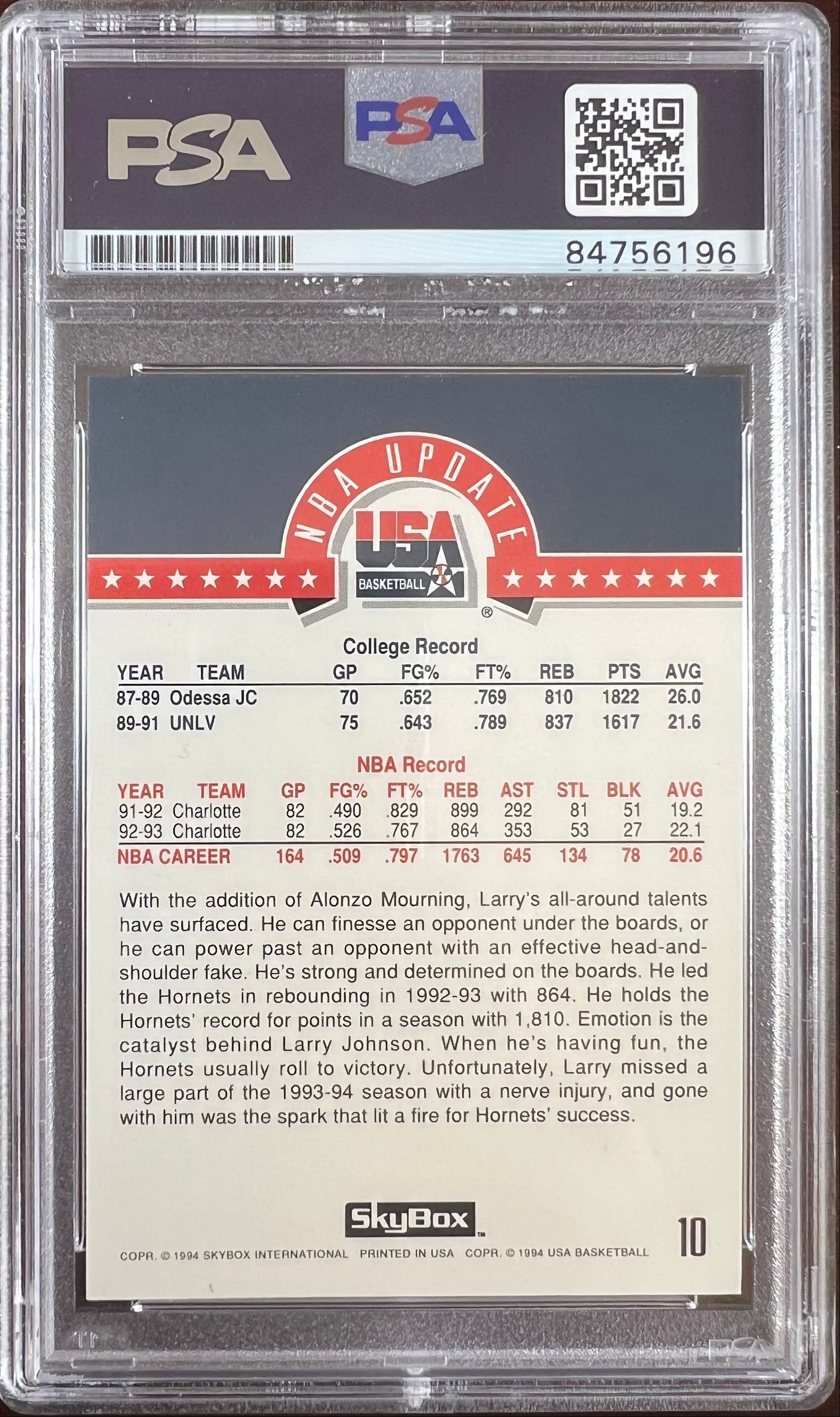Larry Johnson auto 1994 SkyBox #10 card Charlotte Hornets PSA Encapsulated