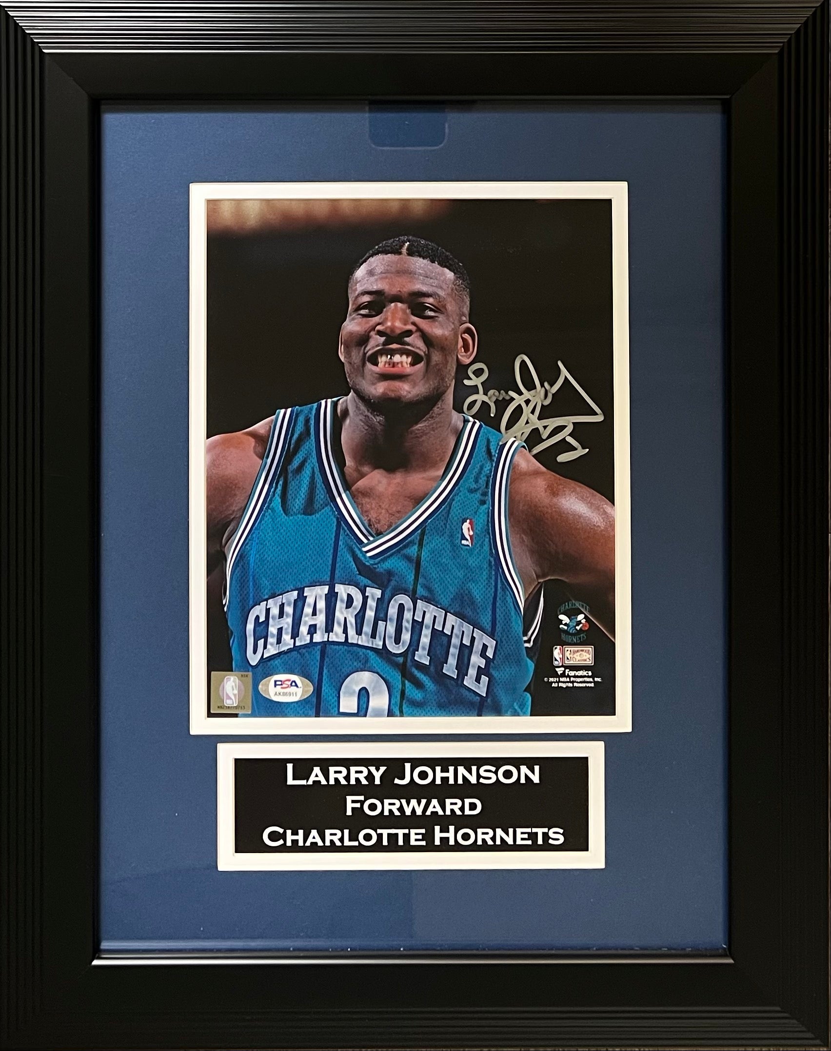 Larry Johnson framed signed 8x10 photo NBA Charlotte Hornets PSA COA