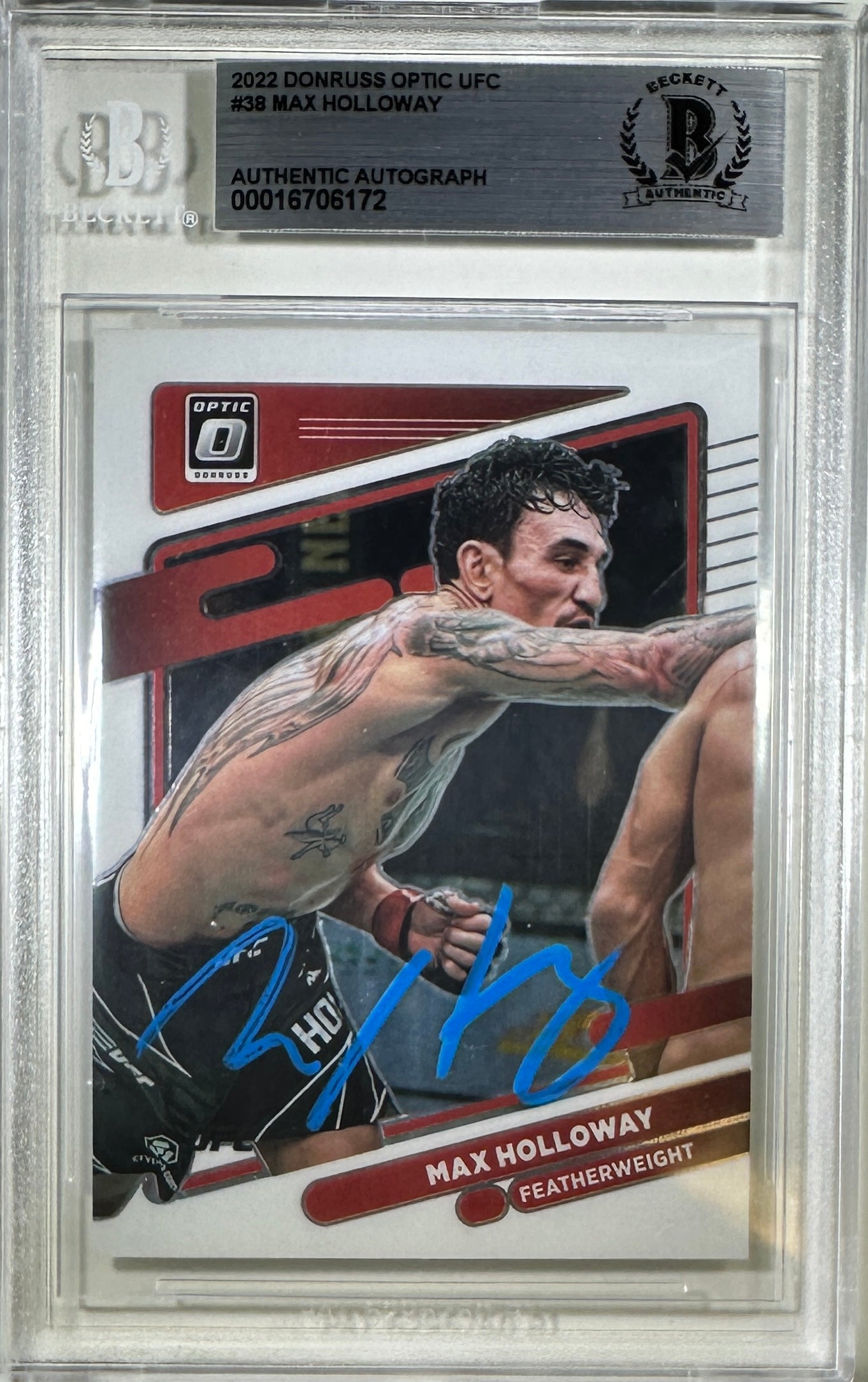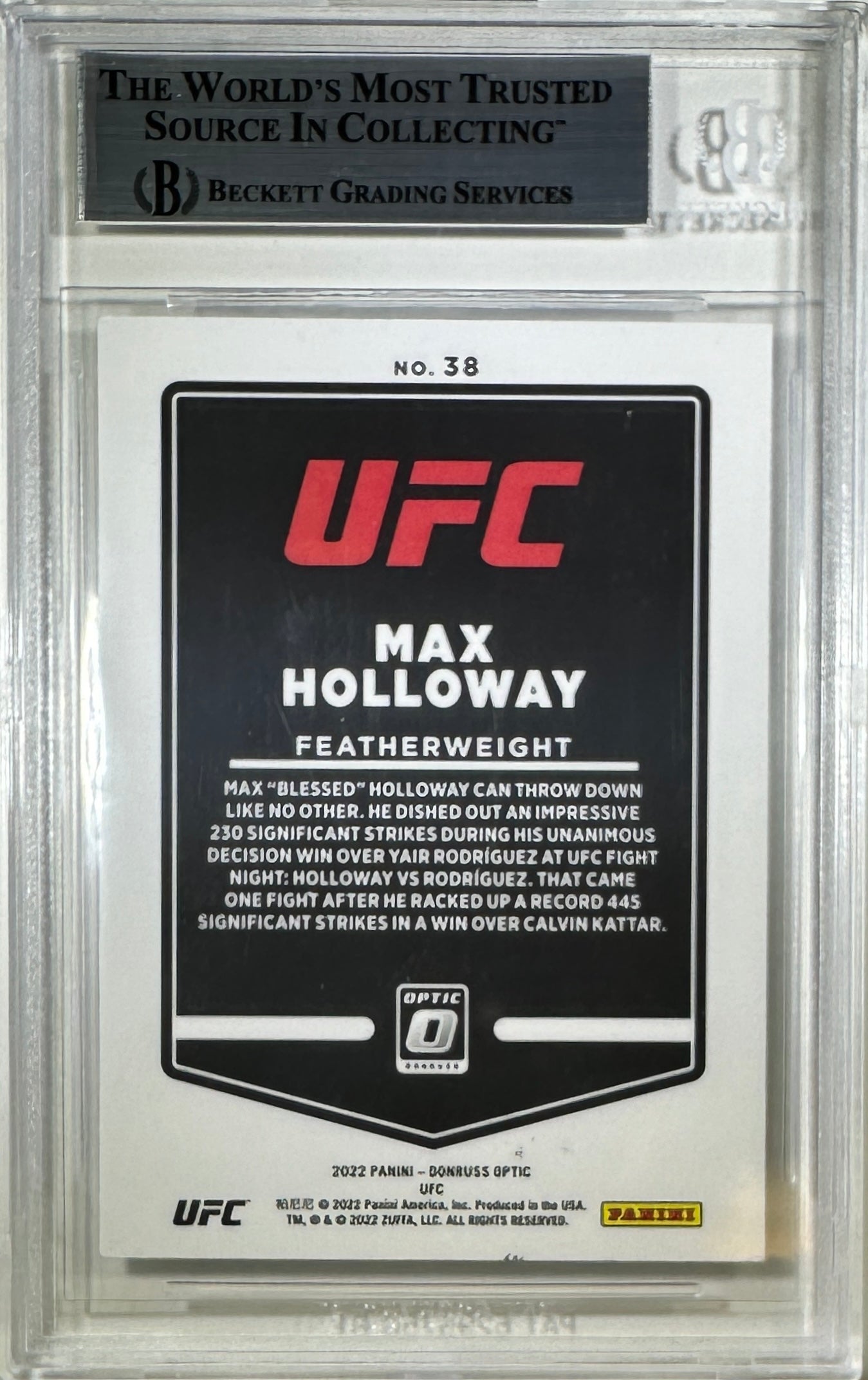 Max Holloway auto 2022 Donruss Optic card #38 UFC BAS Encapsulated Panini