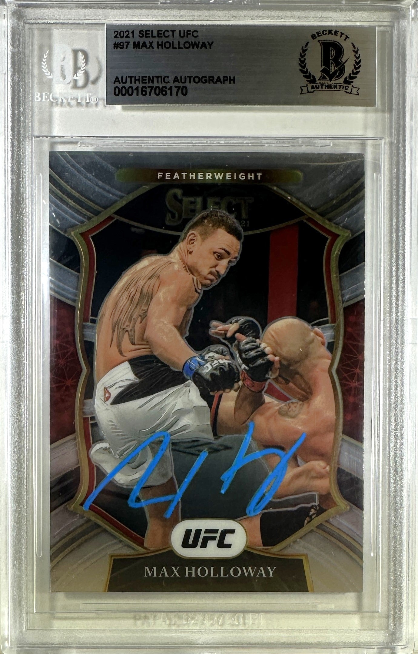 Max Holloway auto 2022 Donruss Optic card #38 UFC BAS Encapsulated Panini