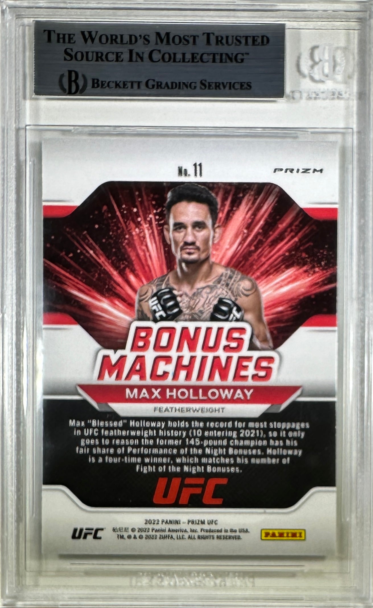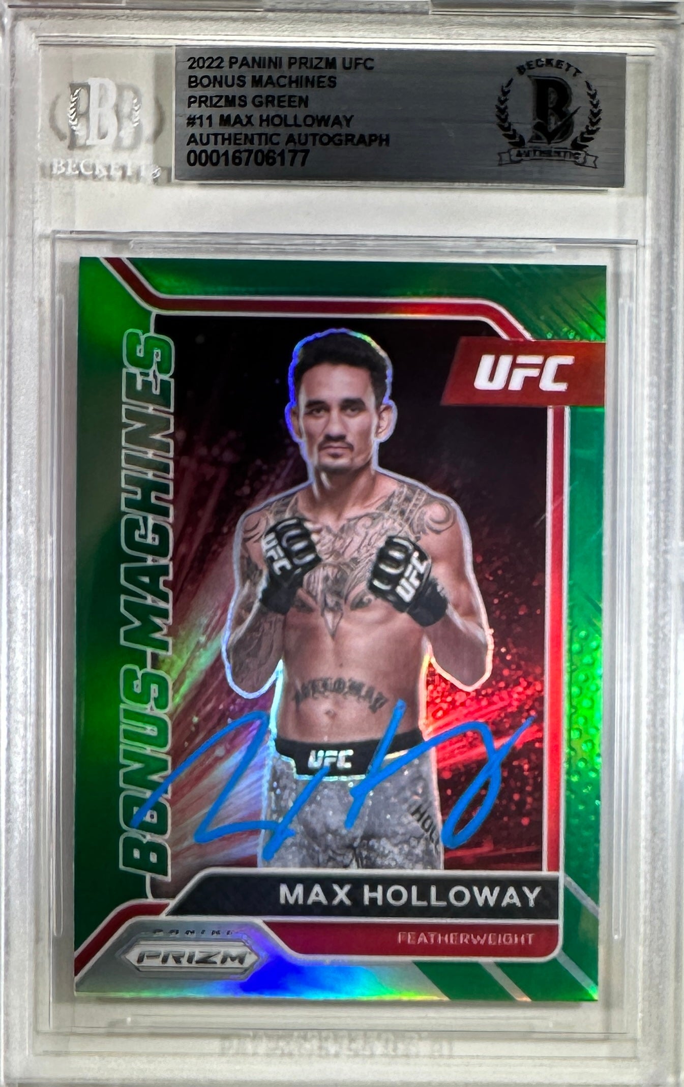 Max Holloway auto 2022 Panini Prizm card #11 UFC BAS Encapsulated Prizms Green