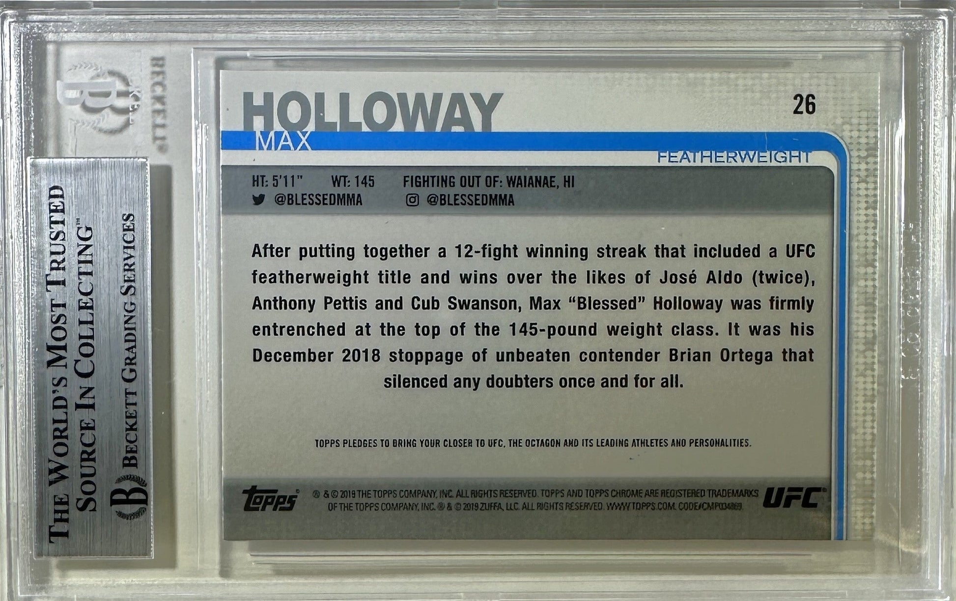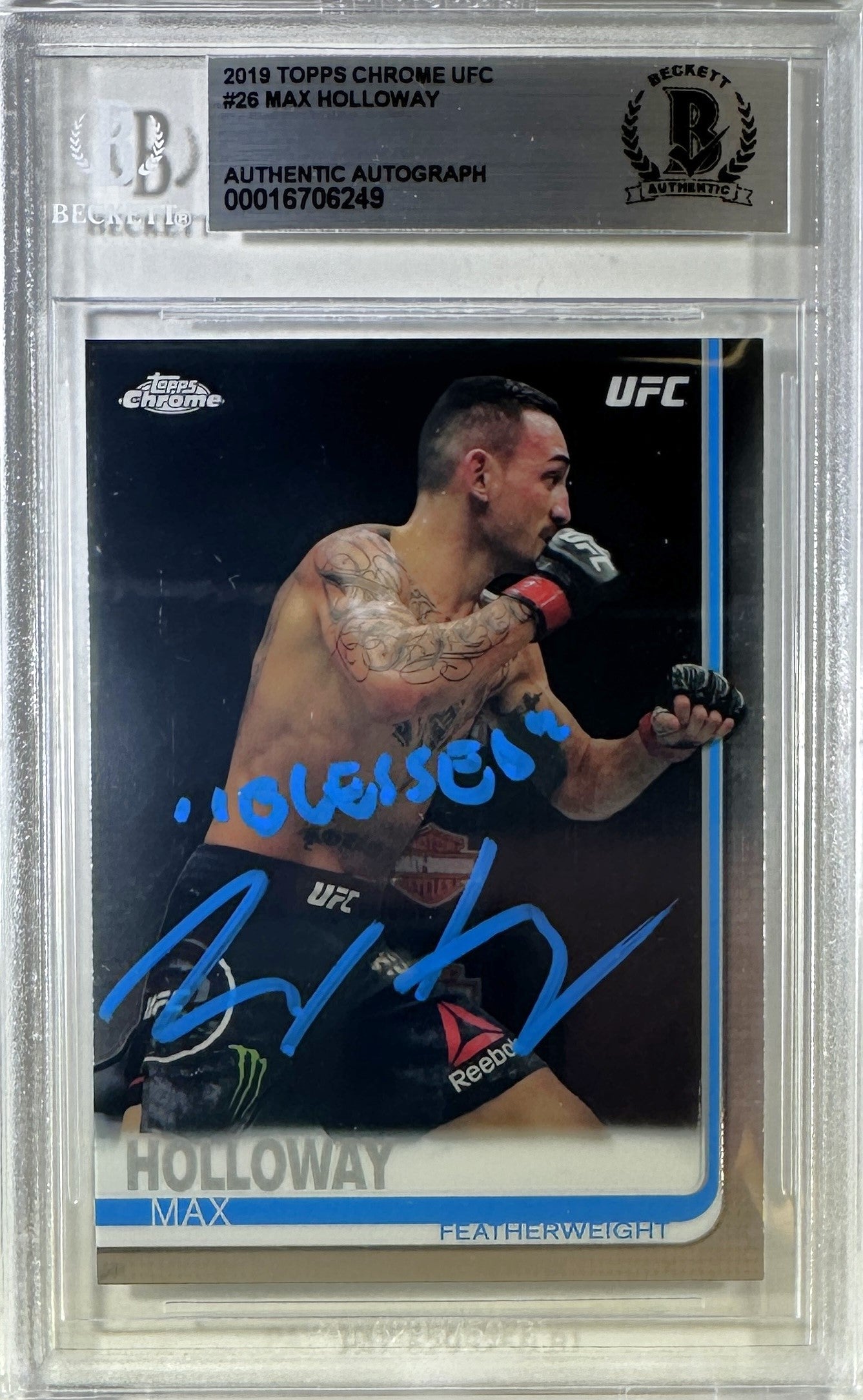 Max Holloway auto inscribed 2019 Topps Chrome card #26 UFC BAS Encapsulated