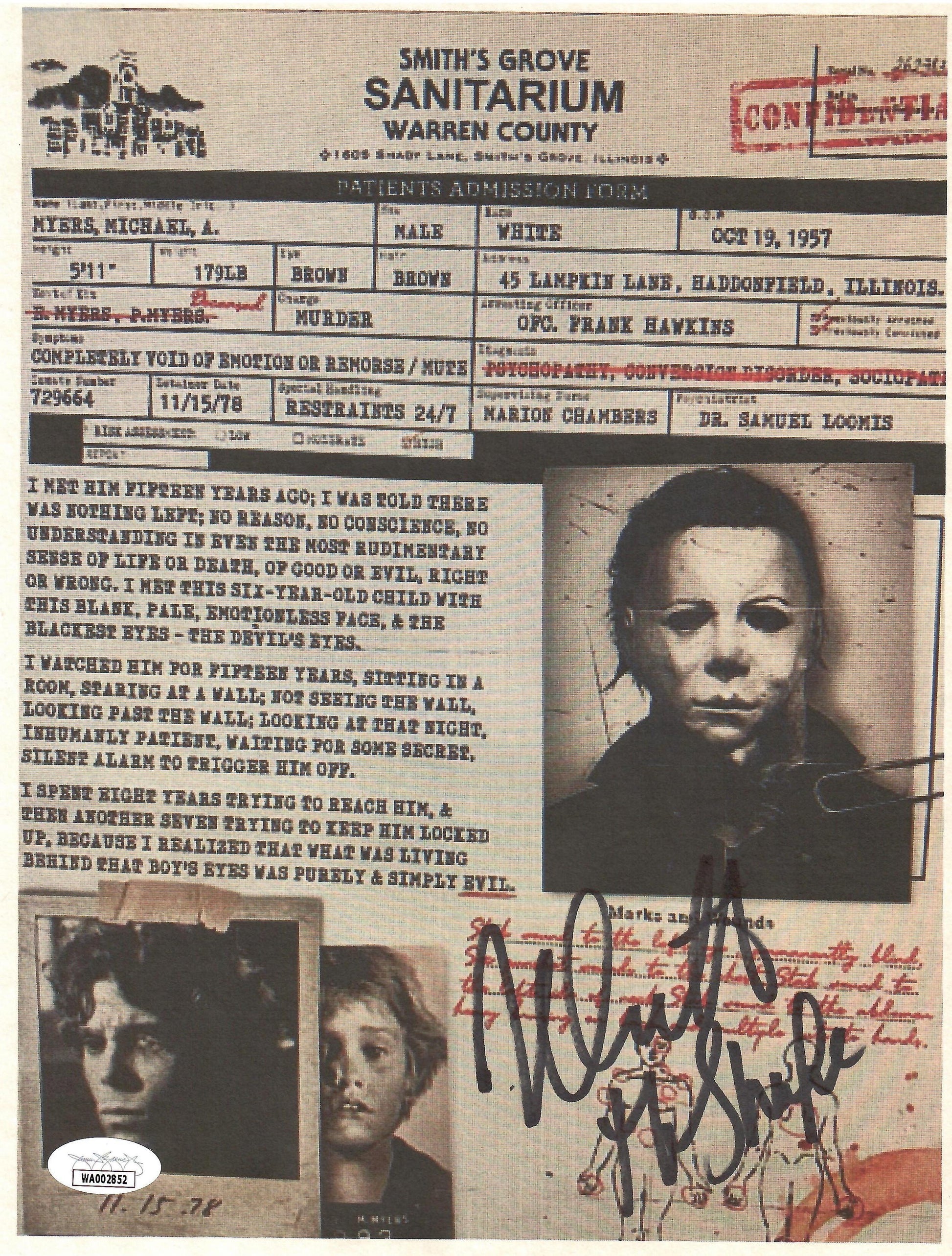 Nick Castle autographed signed inscribed 8x10 Medical Sheet Halloween JSA COA