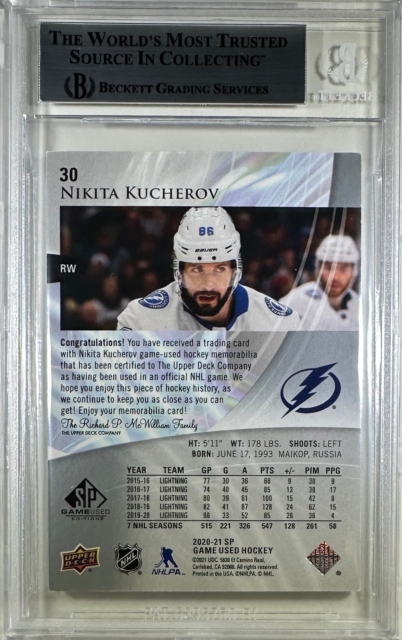 Nikita Kucherov auto card 2020-21 Upper Deck GU Tampa Bay Lightning BAS Encap