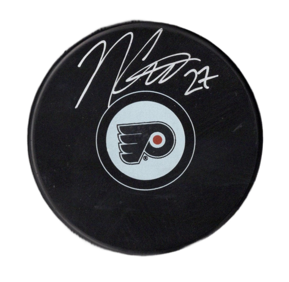 Noah Cates autographed signed logo puck NHL Philadelphia Flyers JSA COA