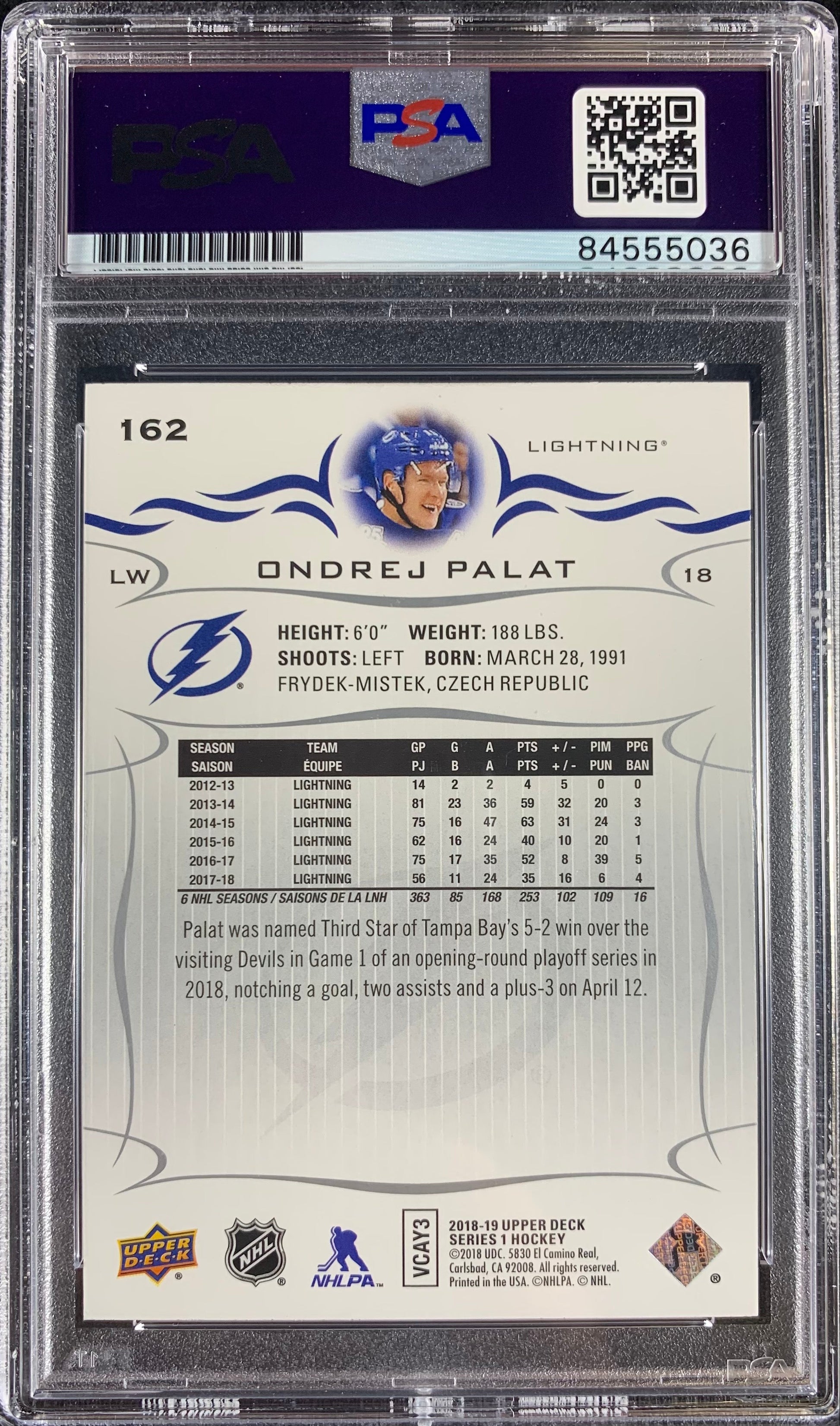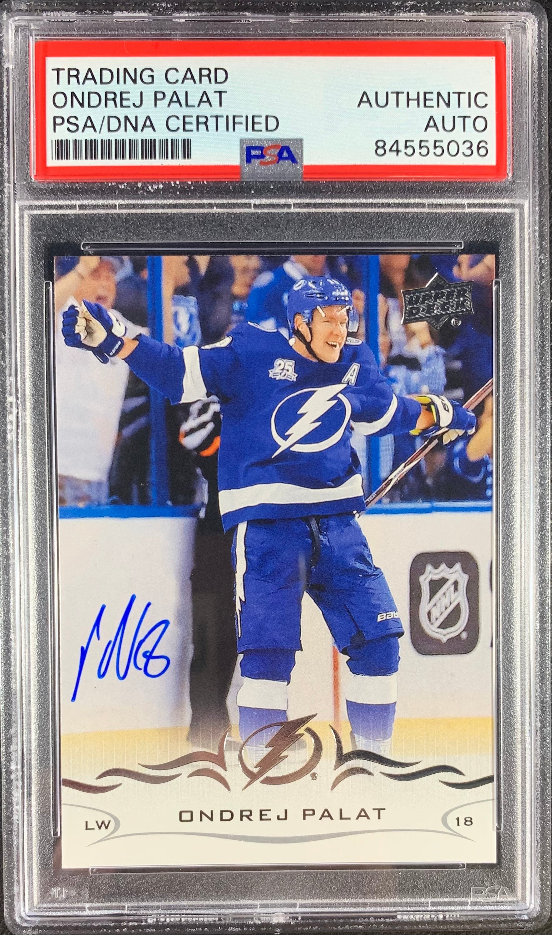 Ondrej Palat auto card Upper Deck Series 1 #162 2018 Lightning PSA Encap