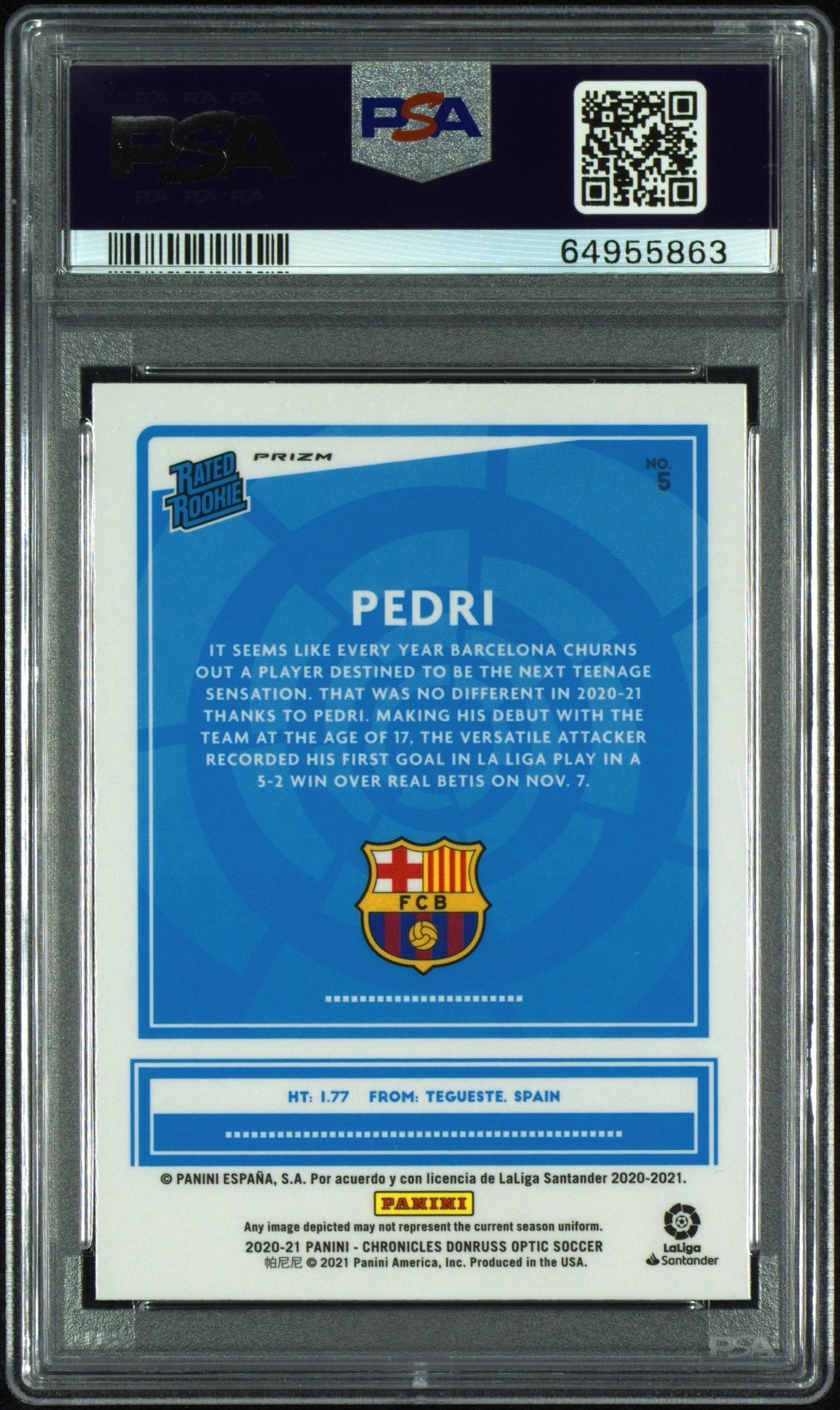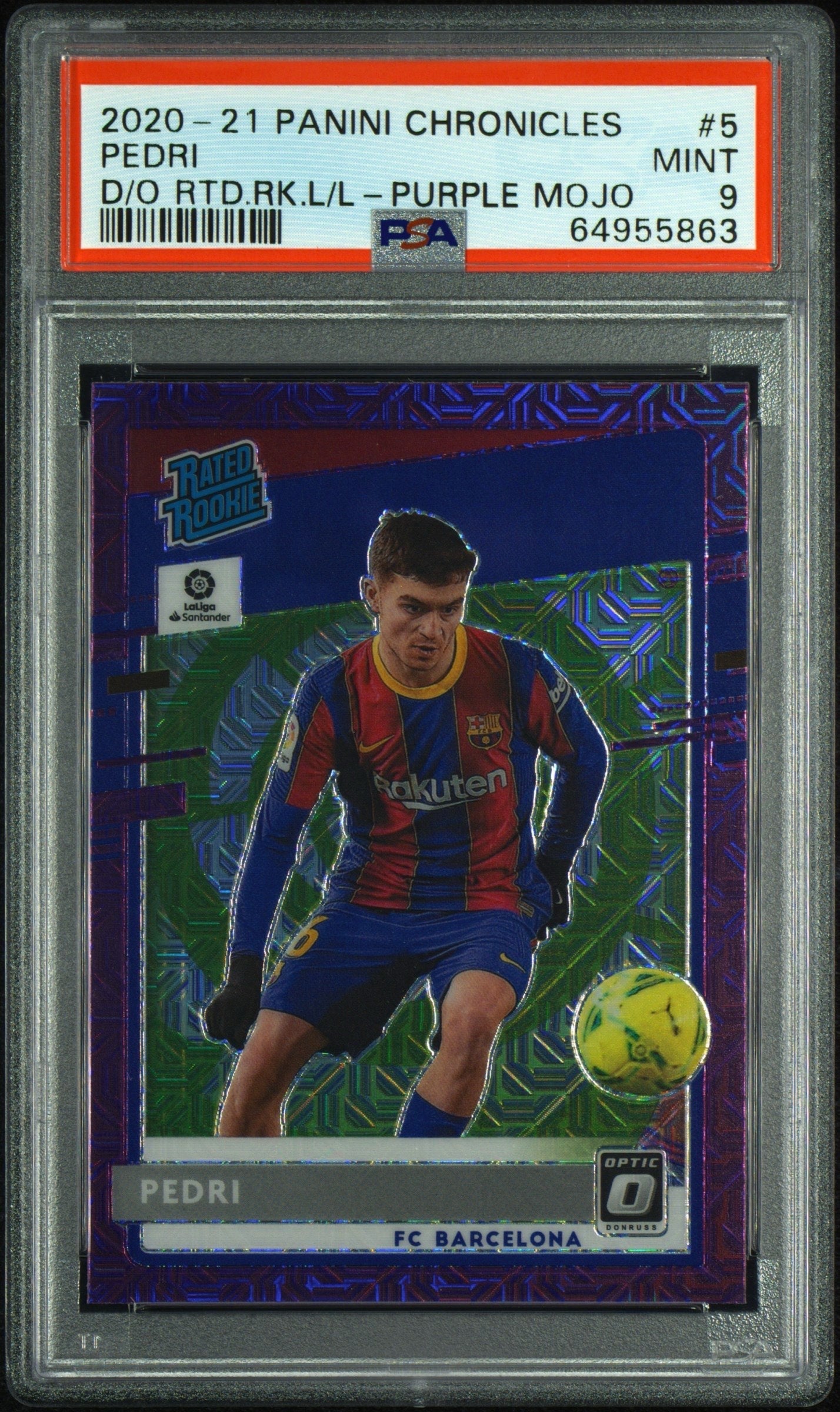 Pedri 2020-21 Panini RC Rated Rookie Chronicles Optic Purple Mojo PSA 9 #5