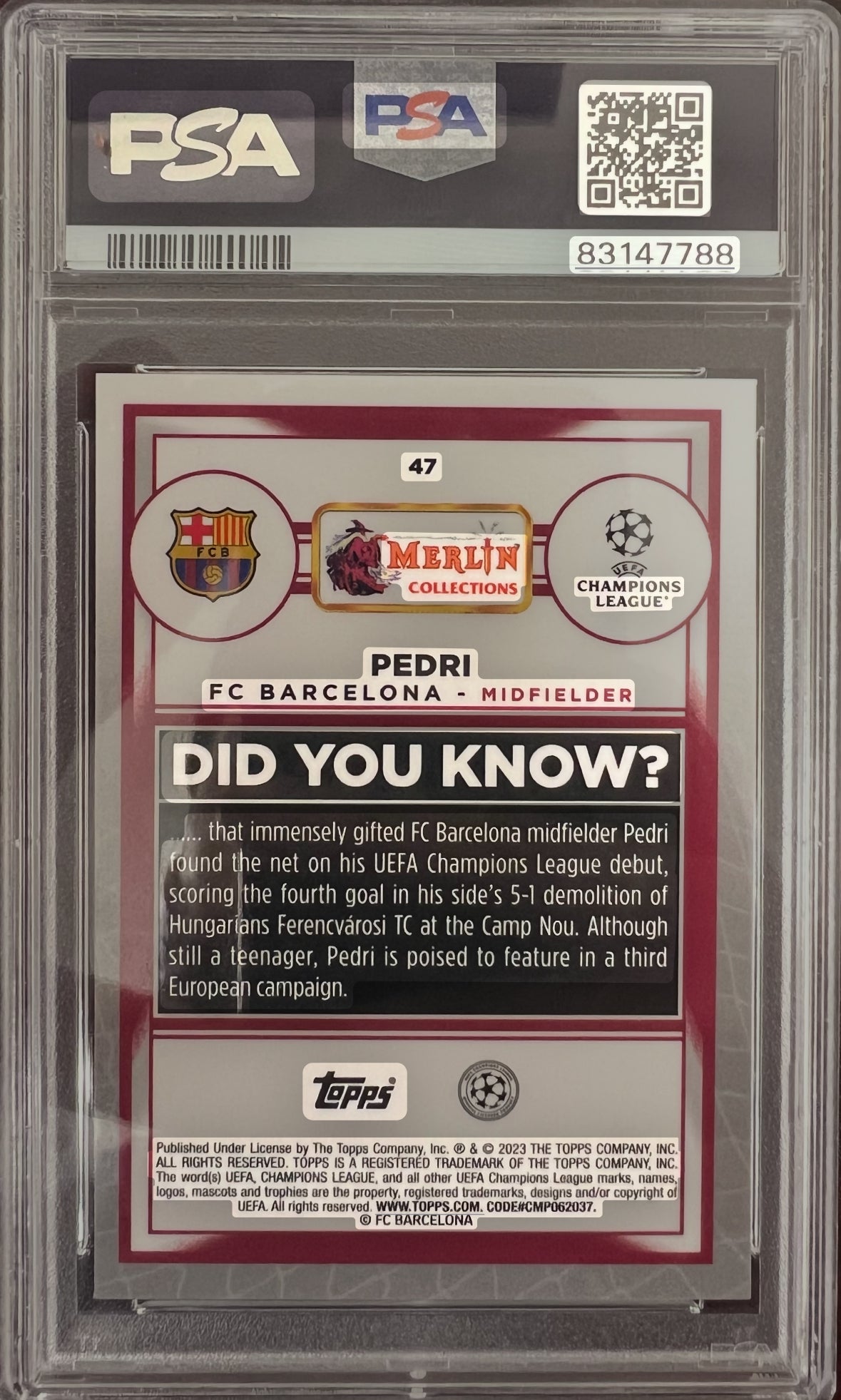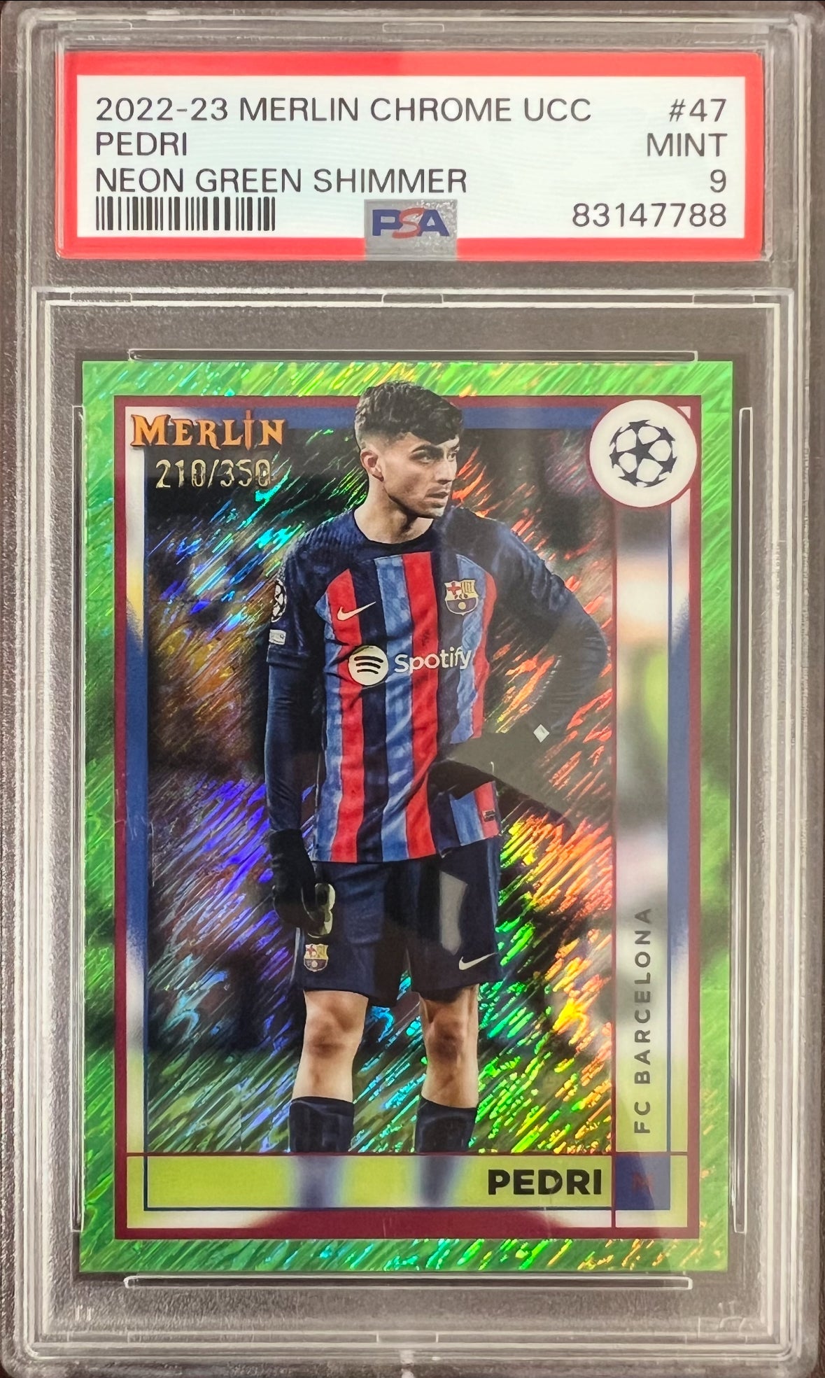 Pedri 2022-23 Topps Merlin Chrome Neon Green Shimmer /350 PSA 9 #47
