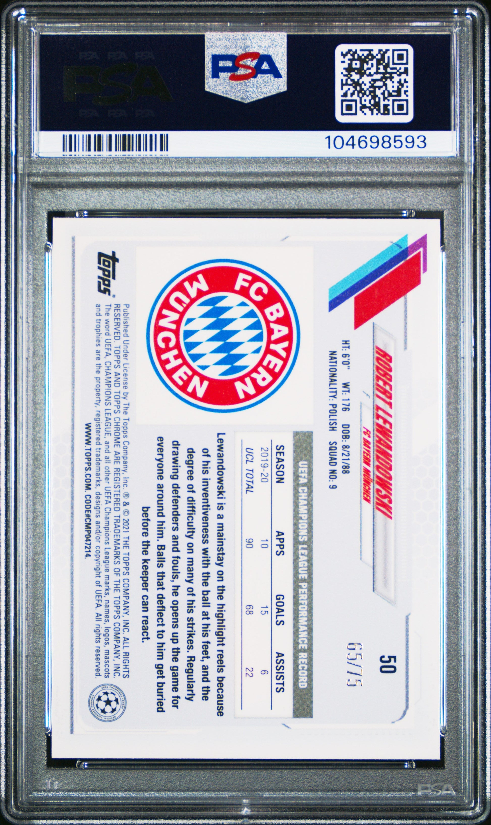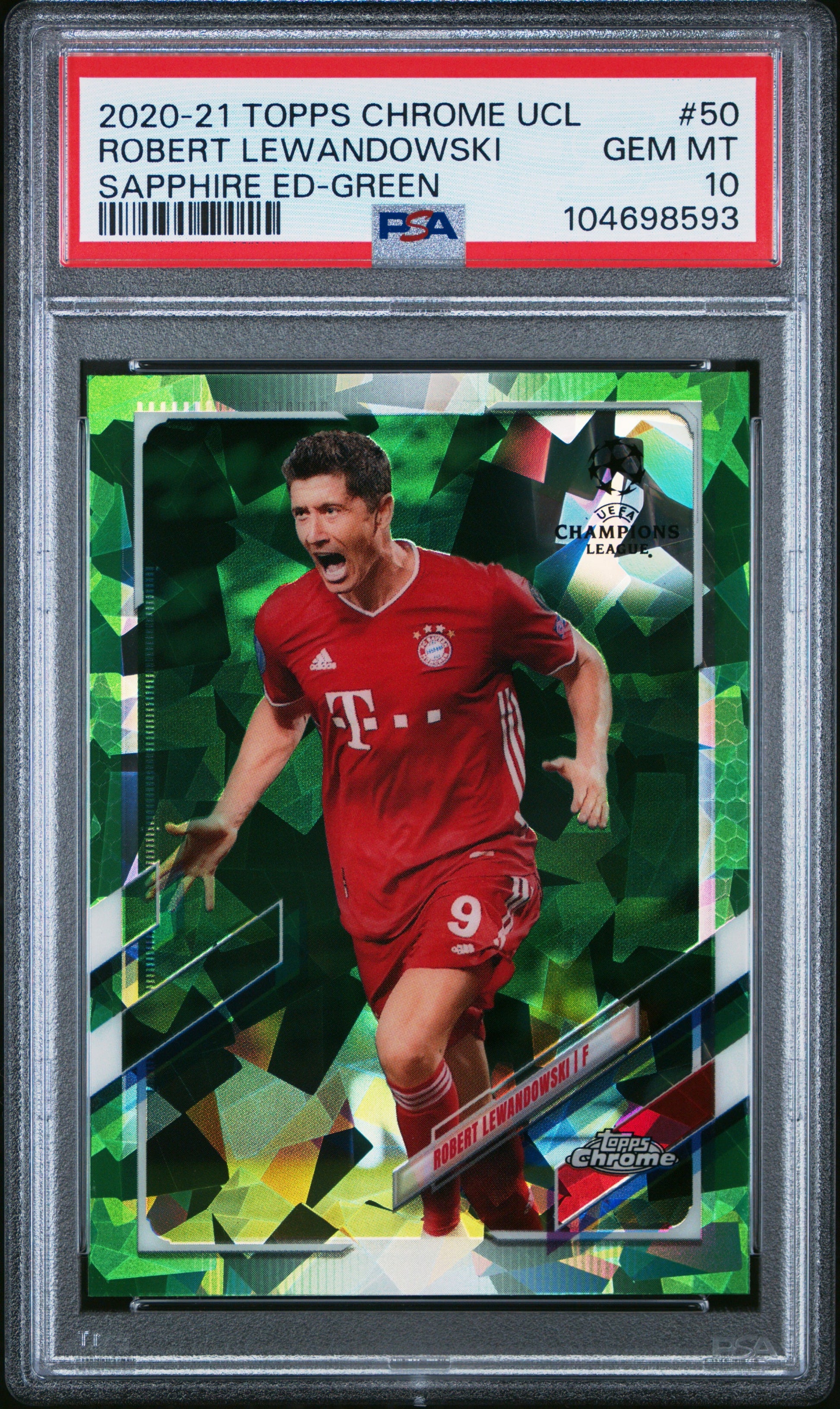 Robert Lewandowski 2020-21 Topps Chrome Green Sapphire /75 PSA 10 #50 Edition